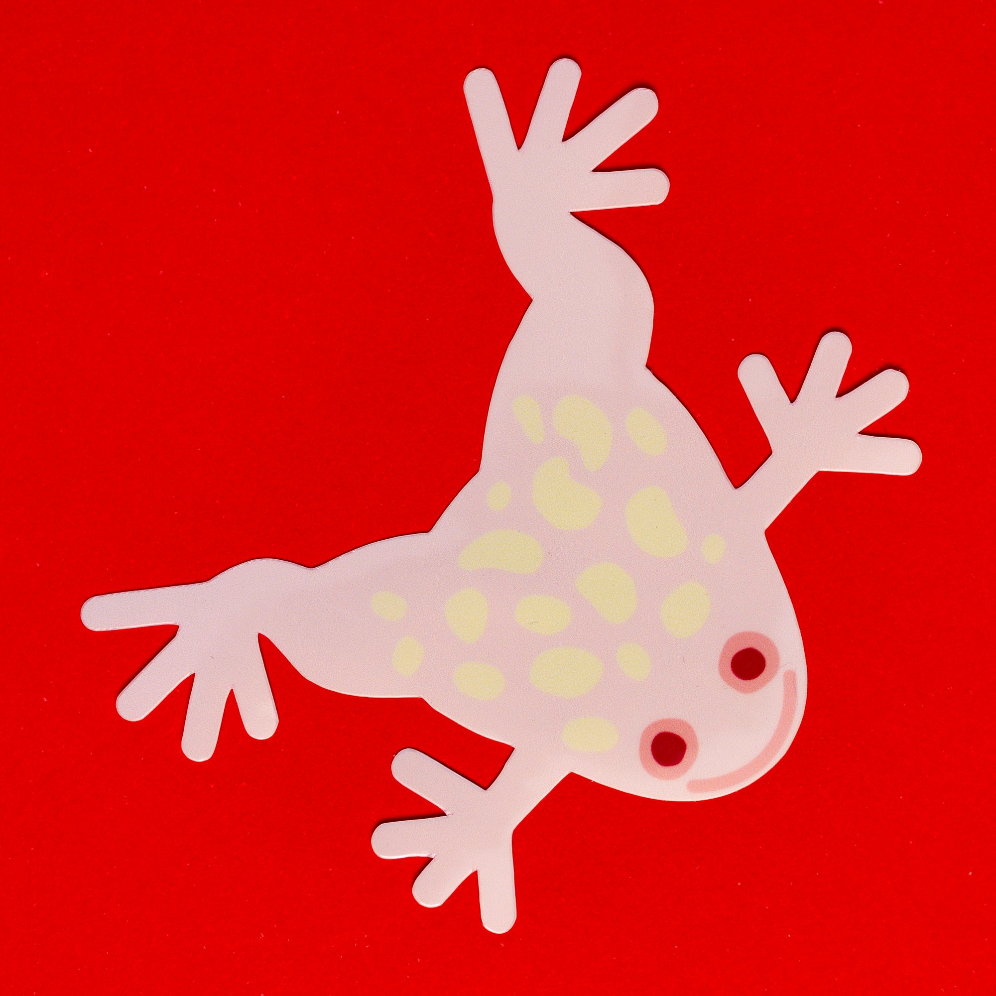 African clawed frogs are tongueless, toothless, and completely aquatic. They are extremely hardy in the wild, and are very long lived in captivity (20-30 years, or even longer!). But this also allows them to easily become an invasive species. Appearance-wise, their eyes look like olives, and the albino ones look like raw chicken ๐