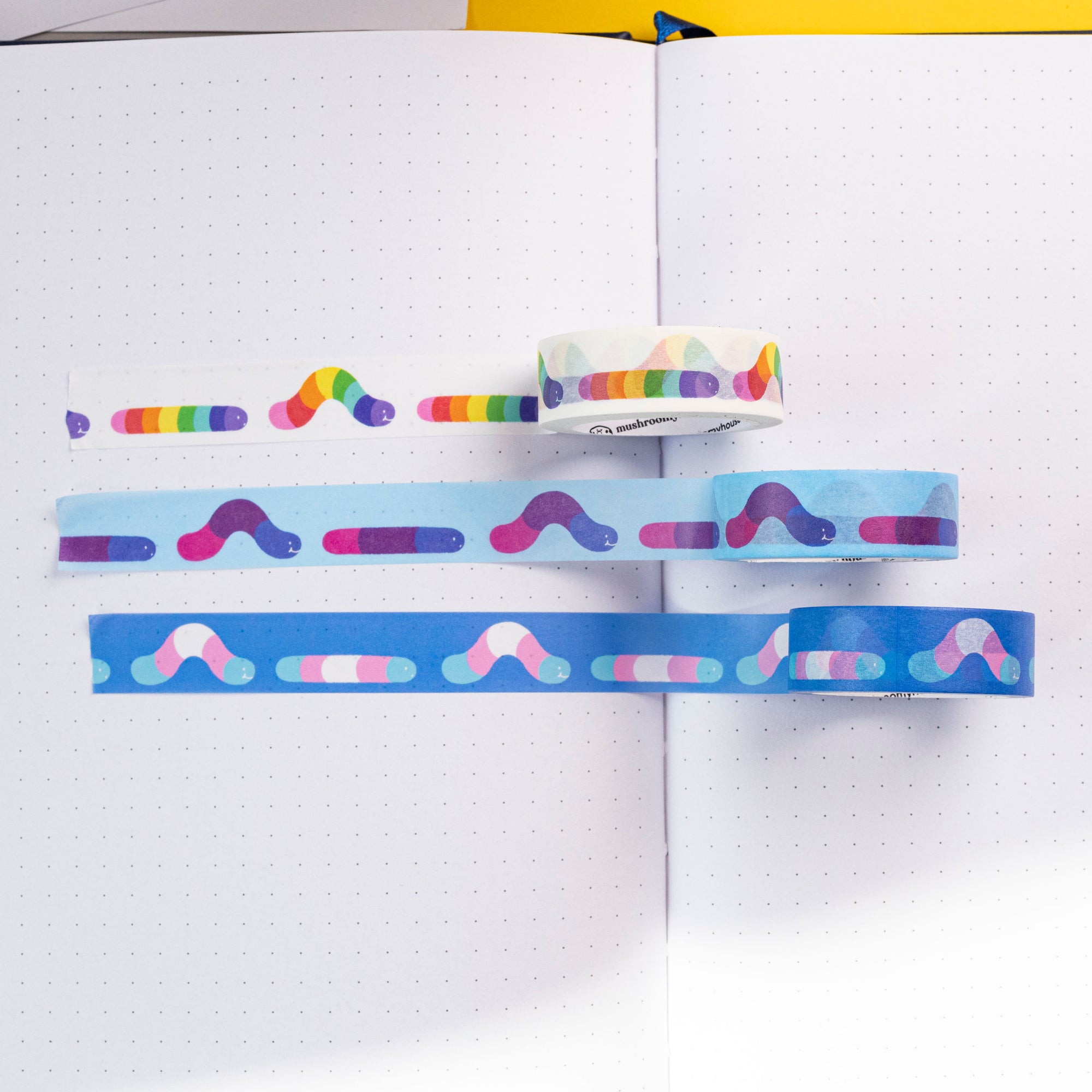 A lovely little worm to celebrate pride! This washi tape is a perfect scrapbooking treat for lovers of trans pride and worms alike!