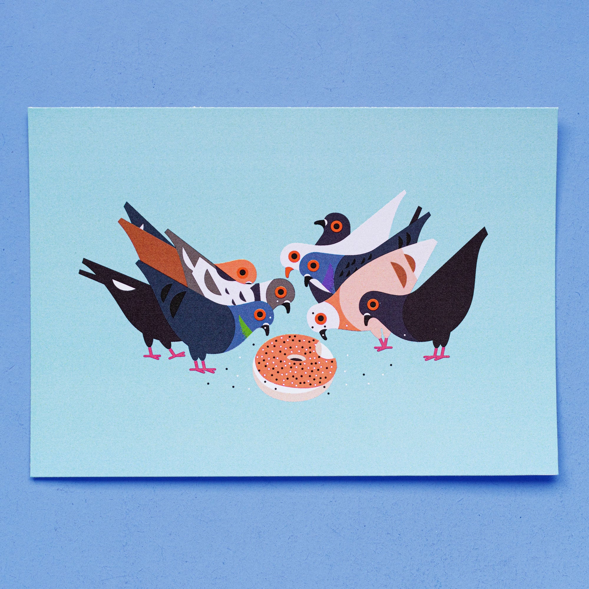 Show your love of birds and bagels with this gorgeous postcard print by Alex Tomlinson.