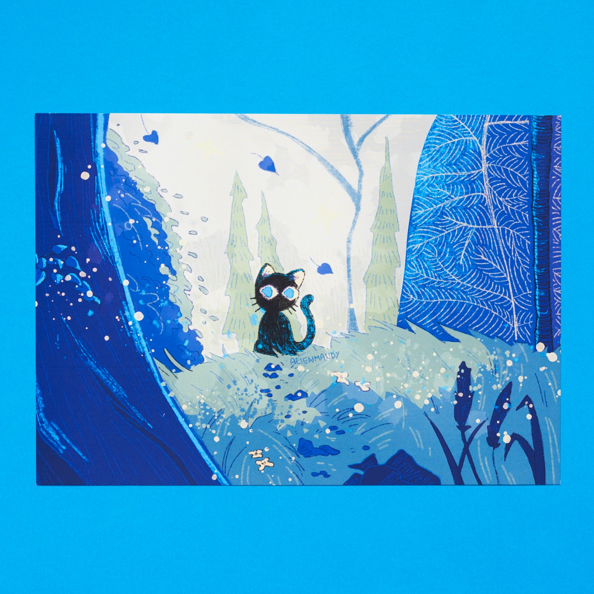 A small cat in the heart of the forest. Original illustration by ALIENMANDY.