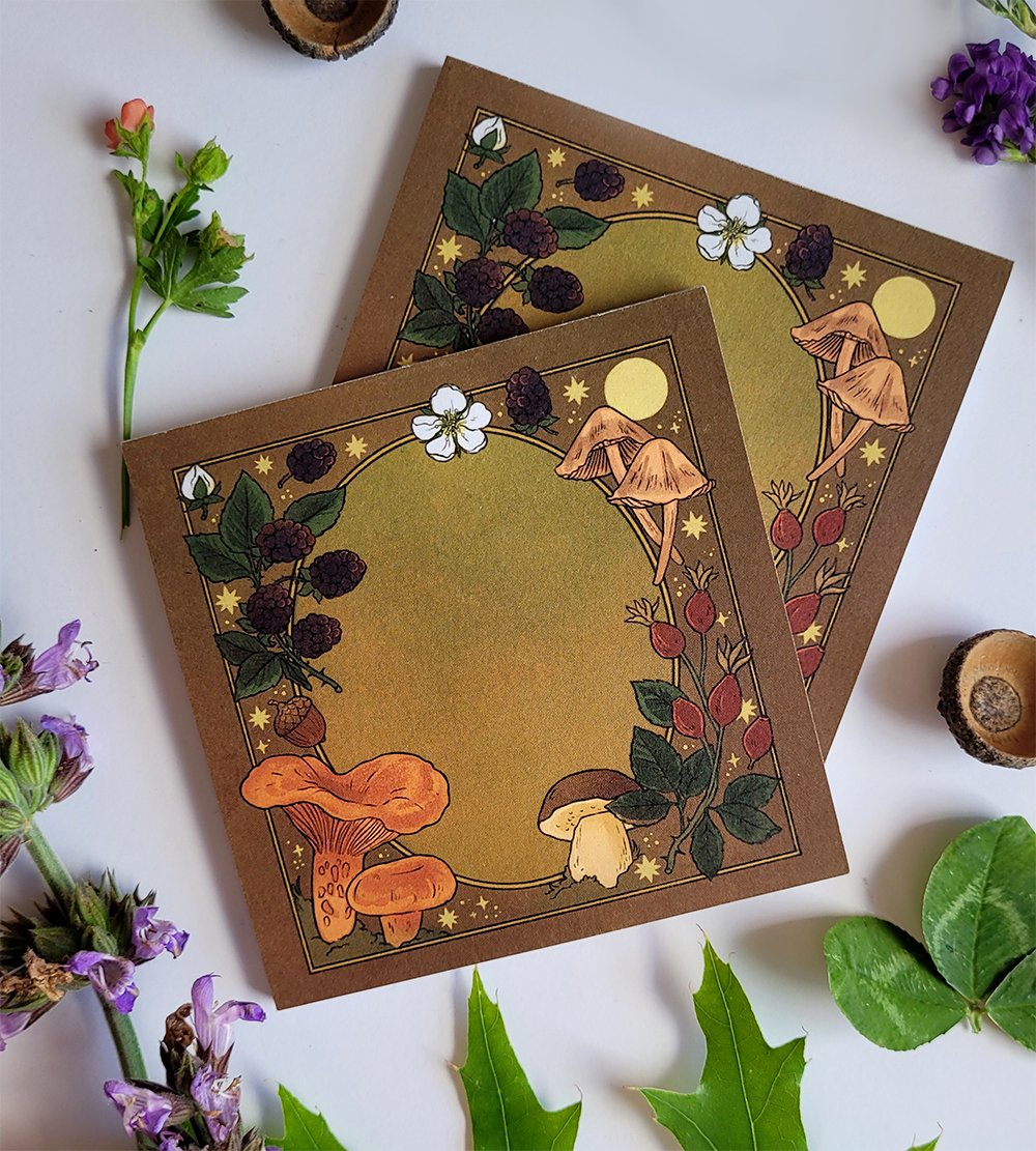 The autumn notepad features edible plants that are not native to Australia’s landscape - these are introduced species and commonly foraged. It captures the bounty of autumn, and has 25 full colour notepad pages. This small sized notepad is perfect for little notes, tasks and lists. It is 9cm x 9cm and printed on post-consumer recycled paper.