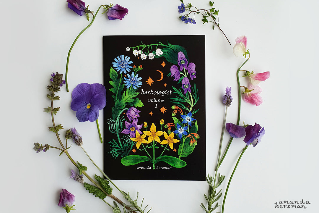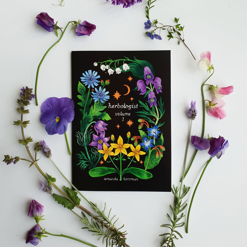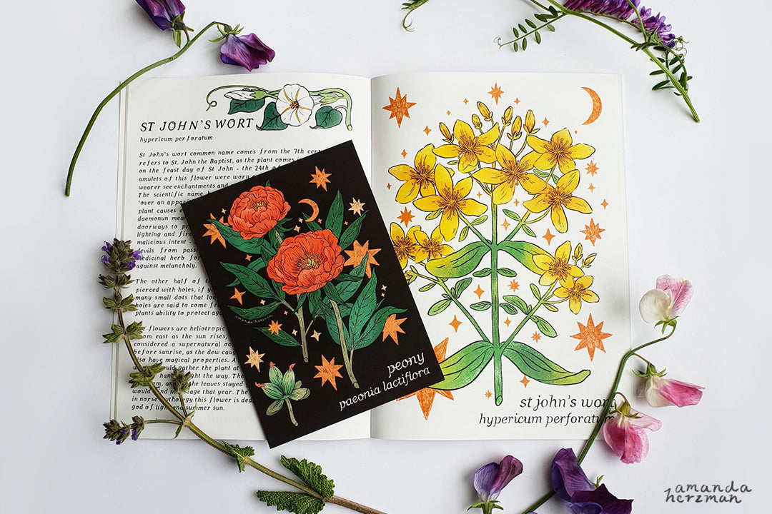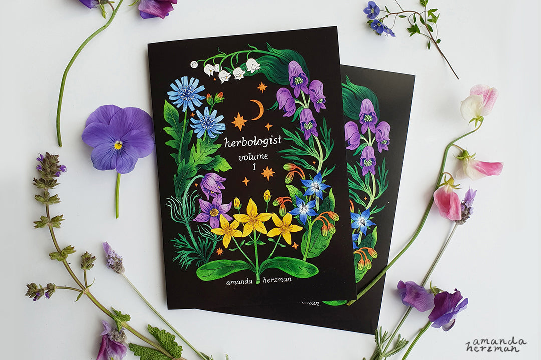 Herbologist Volume 1 collects together a year and a bit of my patreon rewards from September 2019 to October 2020. It features 14 plant illustrations and their associated folklore, facts and mythology. This zine is A5 in size (14.8 x 21 cm) with saddle stitch binding. It contains 32 full colour pages inside.