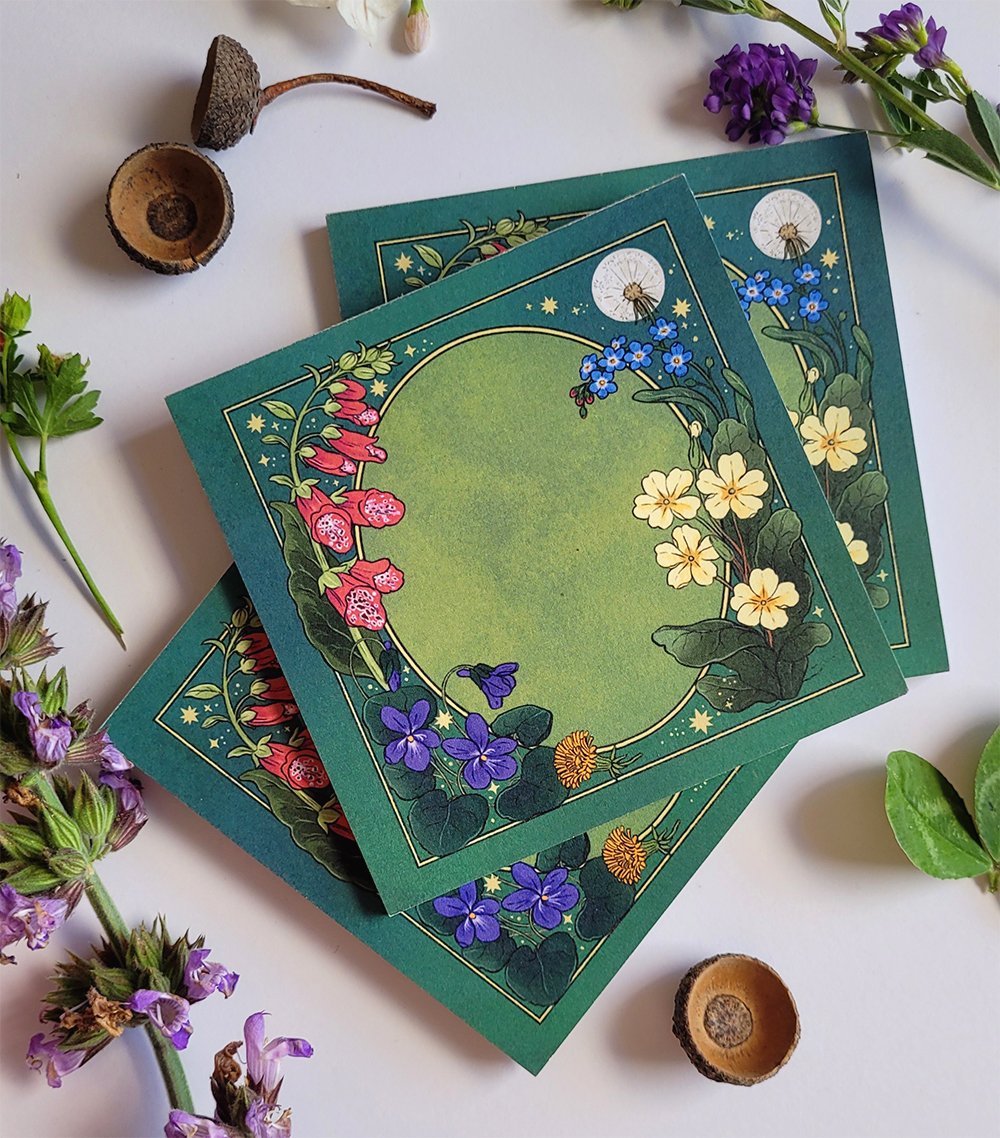 The spring notepad illustrates the ephemeralness of spring, featuring bright blooming flowers. This small notepad has 25 full color pages and is perfect for little notes, tasks and lists. It is 9cm x 9cm and printed on post-consumer recycled paper.
