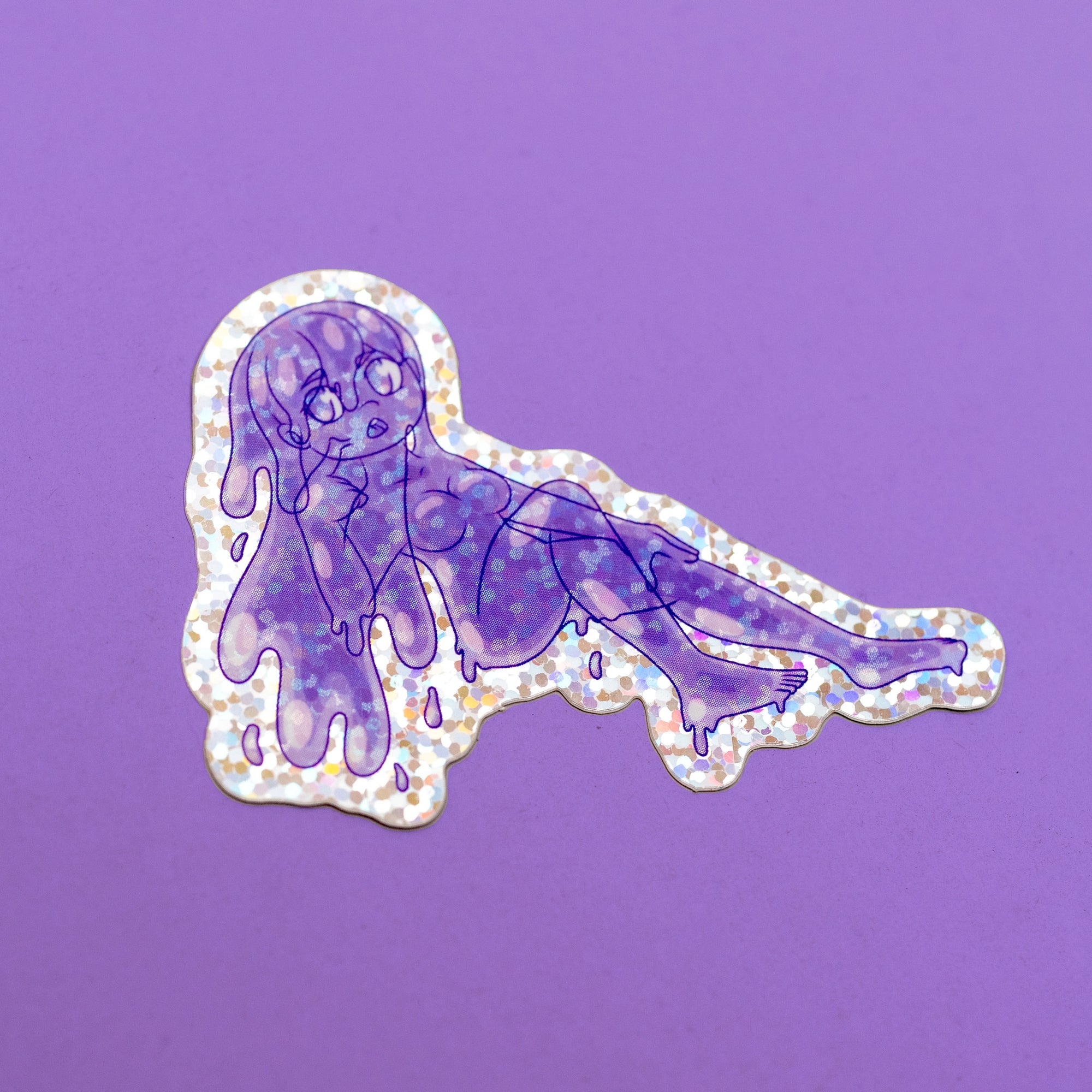 Gelato is here in all her glittery glory! Decorate your laptop, drink bottle and other flat surfaces with this incredibly rainbow glitter sticker. This design is also available as an acrylic charm and a print.