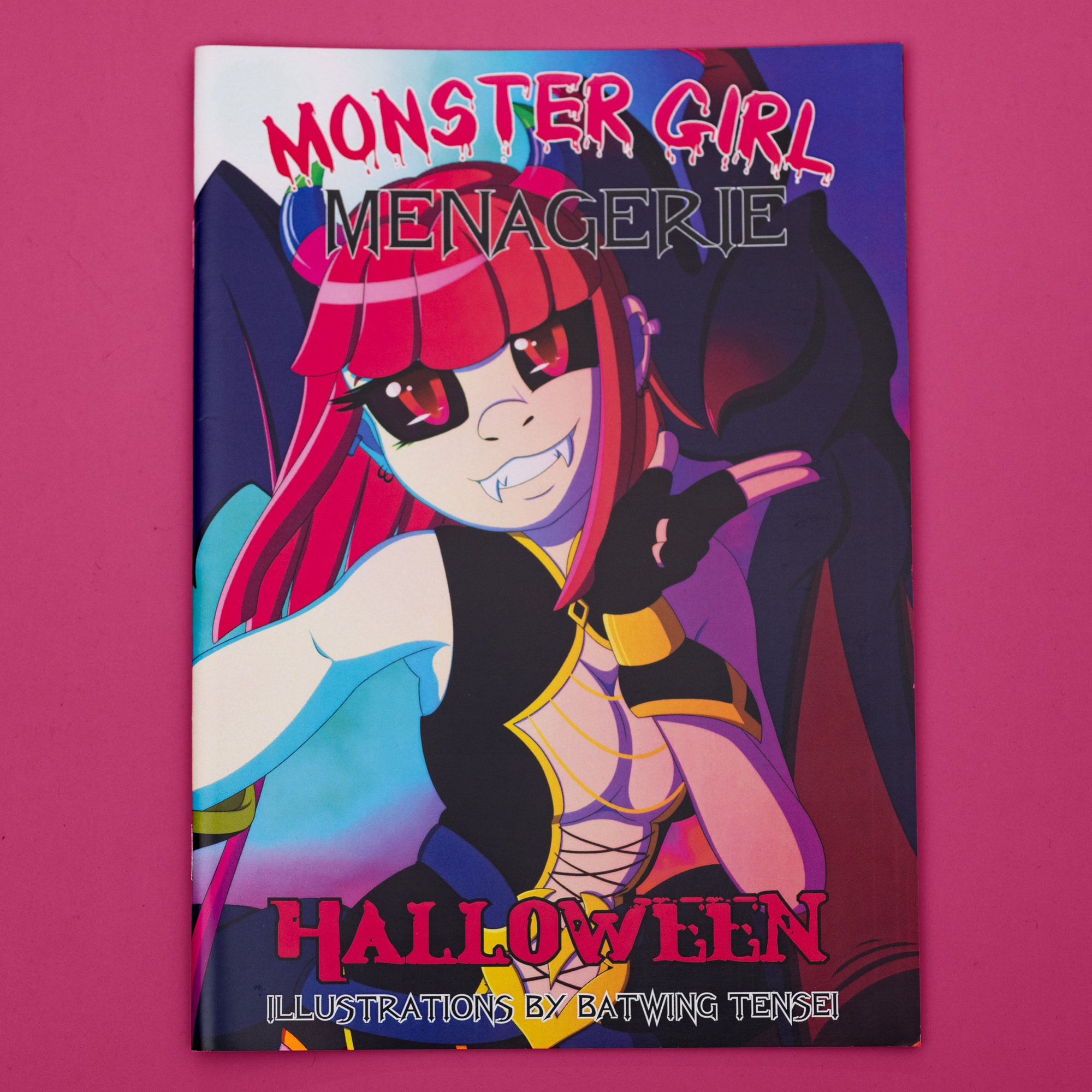 Join 31 of the spookiest monster girls as they prepare for Halloween! This full colour A5 art book contains 32 pages of original illustrations by Batwing Tensei, each featuring a different monster girl. From the elusive Ghost to the mischievous Werebat, there's demons, spectres and creatures galore! Note: This zine is a bit spicy and does contain creative censoring and pin-up style illustrations. There is no explicit nudity, but are implications/references.