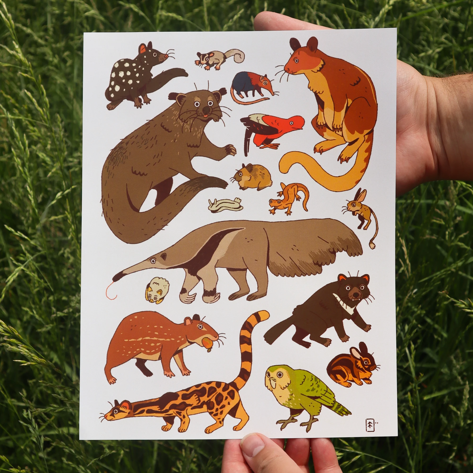 8.5 x 11" lightweight card stock print featuring unique animals from around the world!