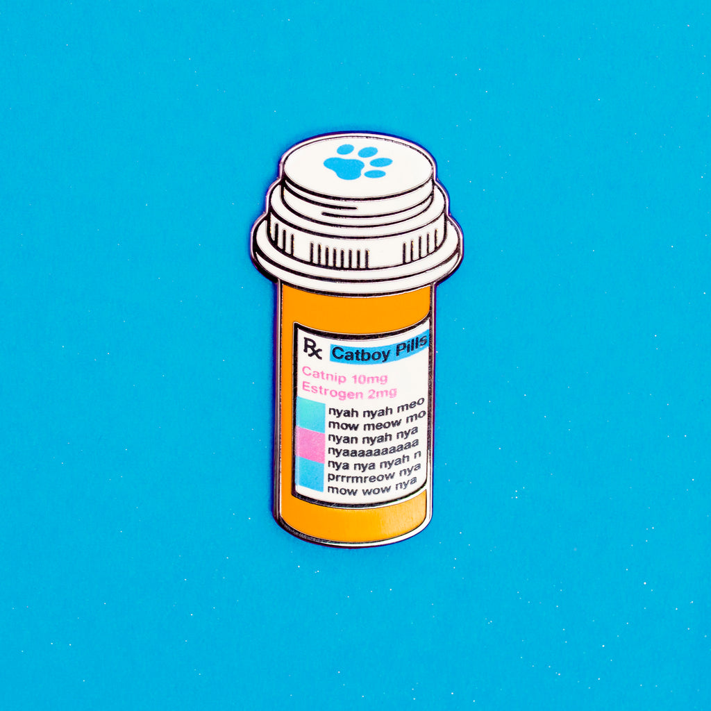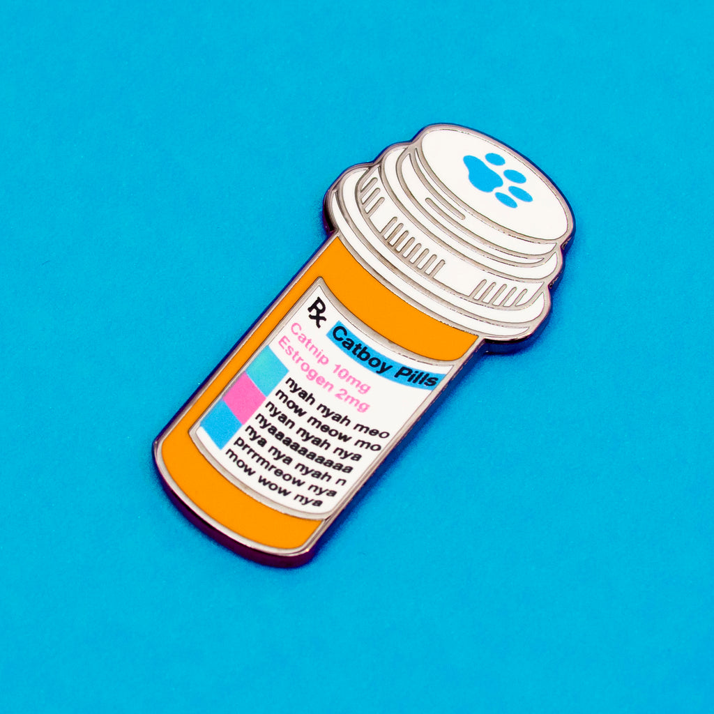 DO NOT INGEST! This is just an enamel pin, not actual catboy estrogen pills. Contact your health care provider/veterinarian for the real thing.