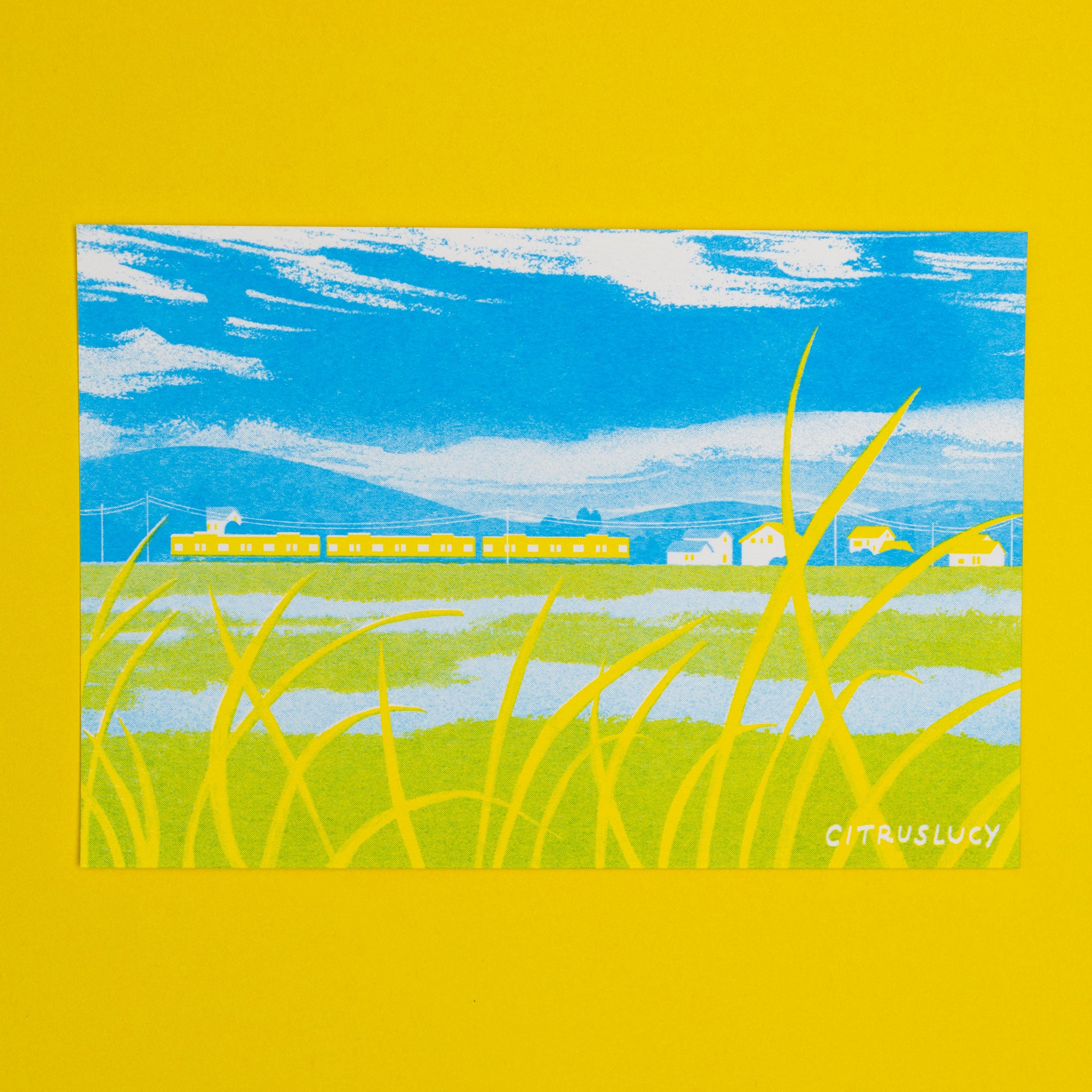 Country Train Riso Postcard