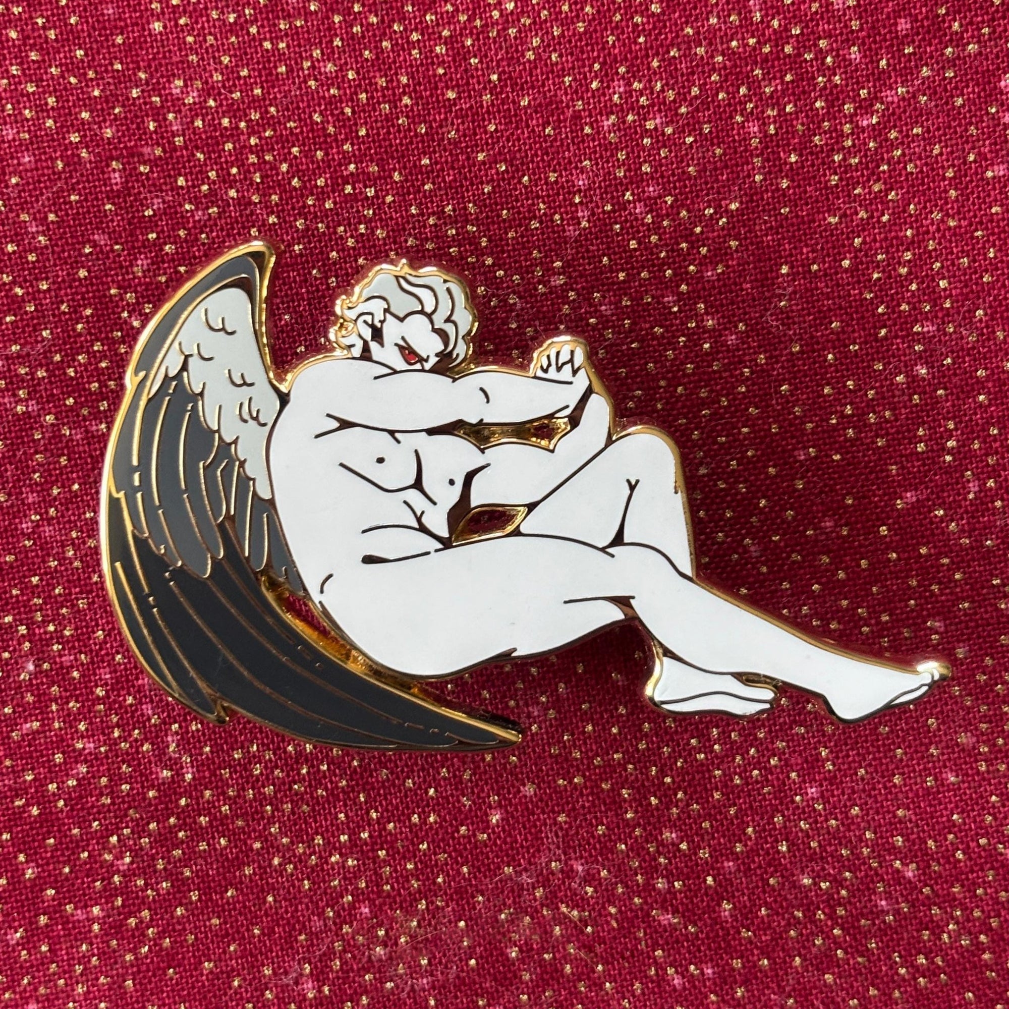 Inspired by the painting of the same name, by Alexandre Cabanel. Each pin is 2.3 inches wide, with hard enamel, two pin posts with rubber backings, and gold plating.