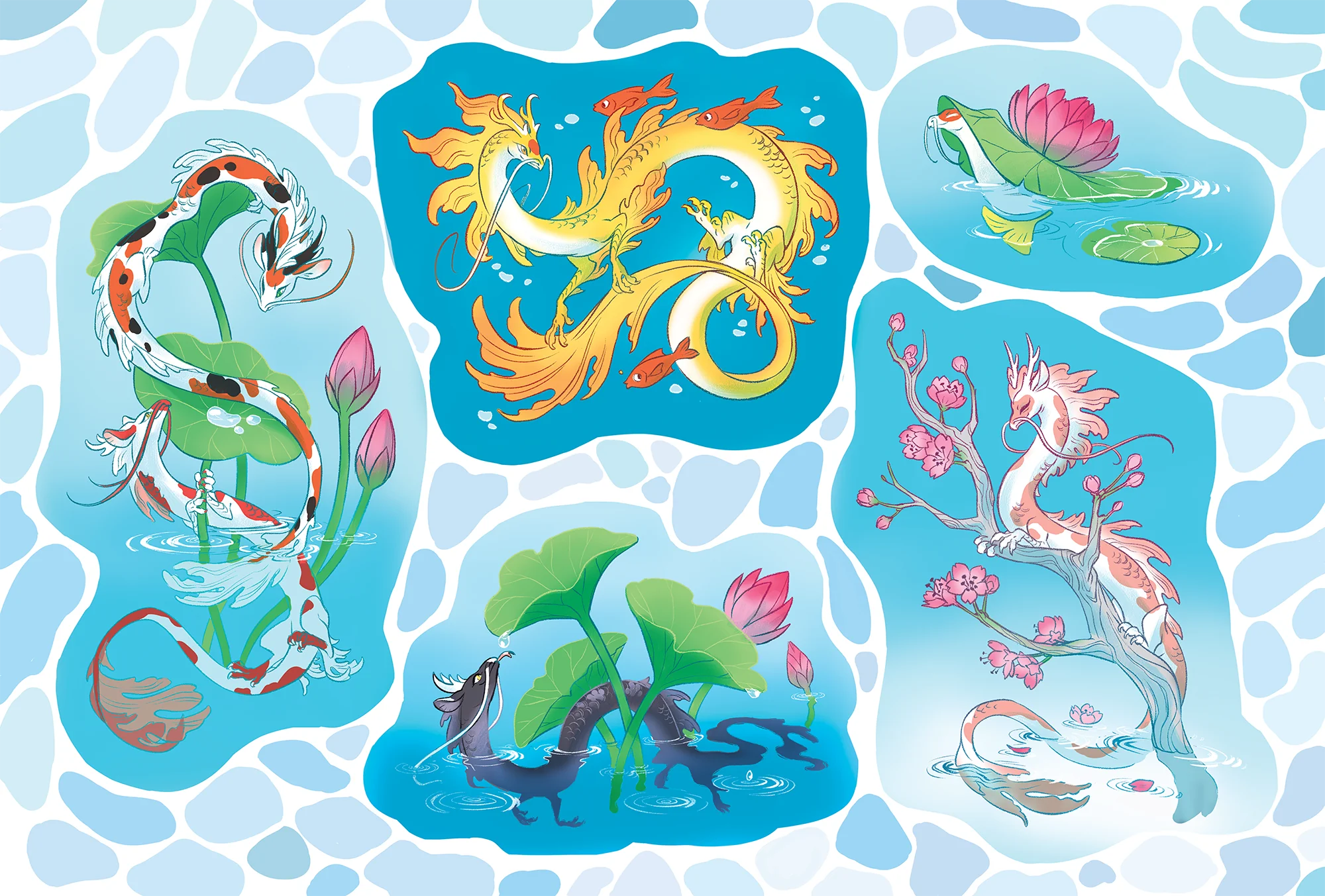 5 elegant little koi dragons living amongst the fish and flora. Each little dragon is kiss cut so you can individually peel them off the sheet! Full sheet is approx 6x4 inches while each individual sticker is is between 2-3 inches on the longer sides. This sturdy glossy weatherproof vinyl will hold up to years of outdoor use / heavy handling too! Great for phones, handheld consoles, vehicles, etc.