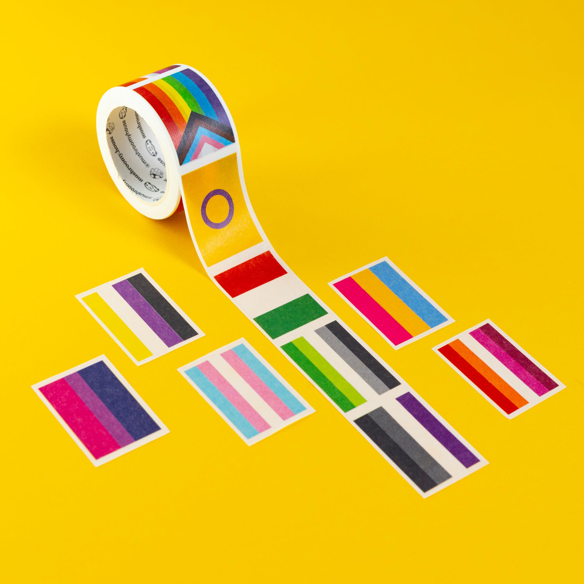 A new washi tape featuring flags of the LGBTQ+ community to celebrate Pride Month!