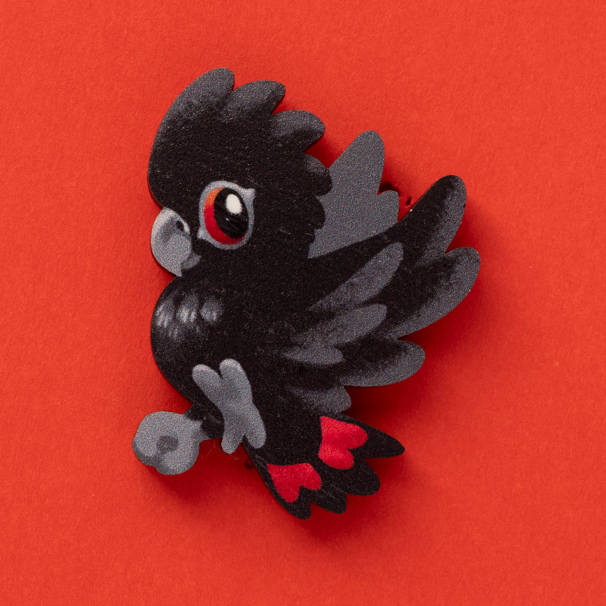 These little Aussie cockatoo pins are printed in full colour on sustainably sourced wood! They have two pin posts on the back to keep them securely in place wherever you put them (unlike the real thing) and feature a little gloss finish on their eyes for that extra spark of life when they catch the light.