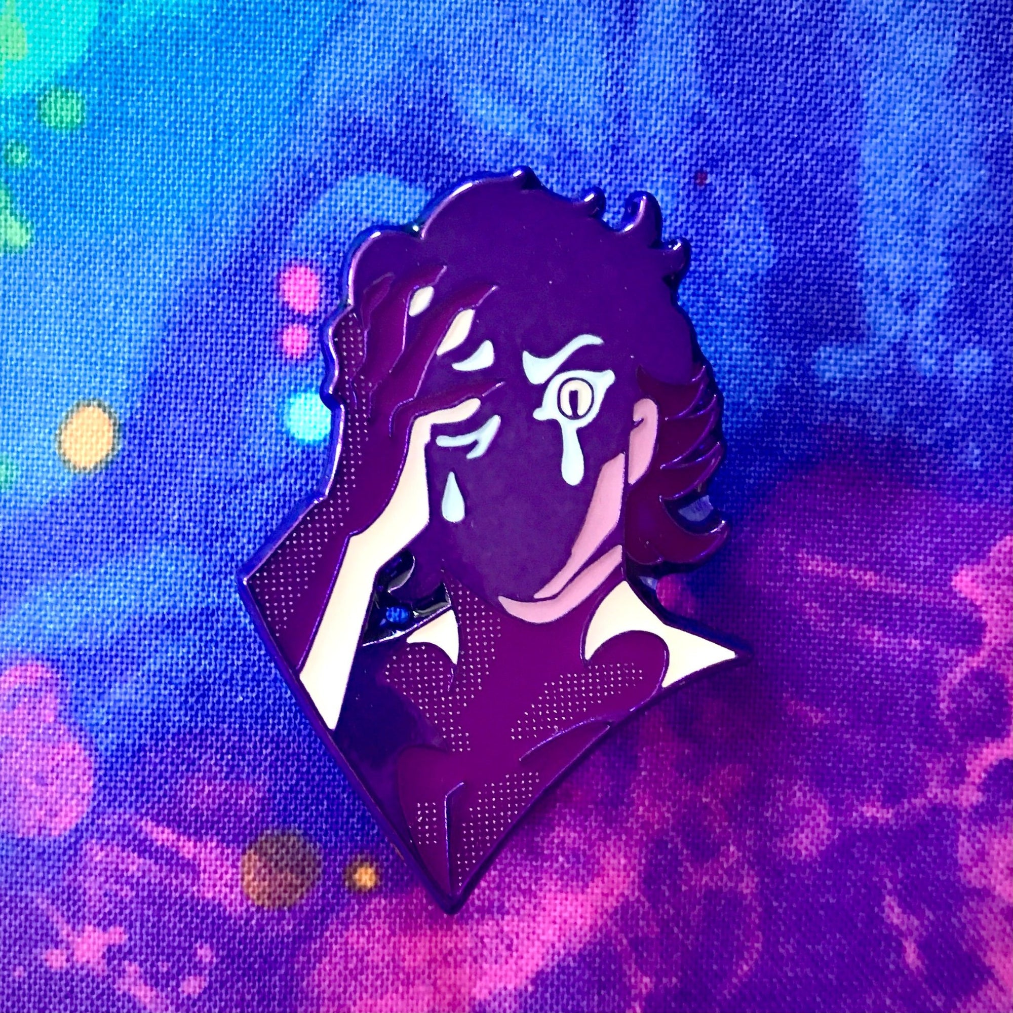 | Each pin has two pin posts with rubber clutches, and screenprint. This variant has purple chrome (anodized) plated, with soft enamel and epoxy. 2 in (5 cm) long. Anodized plating is unique for every pin. Texture and variation in plating should be expected. The plating may appear slightly different than the example images shown in this listing. |