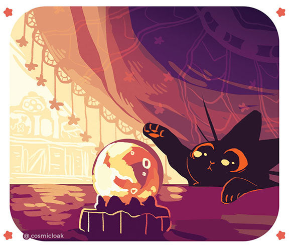 Prints feature a curious cat playing with a witch's crystal ball. Part 1 of 2 of the Premonition Set. Printed on Satin 260gms paper.