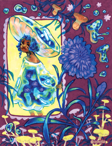 based off of the "cornflower bolete" mushroom. It's deep blue on the inside! The "cornflower" in the name is based off the flower's bright blue of it's blossom.