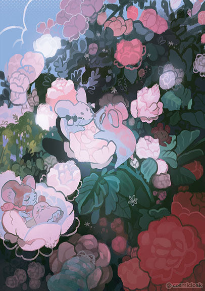 Prints features Bijou/Hamtaro & other characters climbing through tall stalks of flowers & leaves. The background refers to the hamham term & animation for "dazzlie" meaning: beautiful ♡ Printed on Satin 260gms paper.