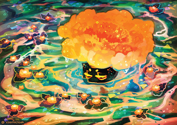 cosmicloak's character- glimsprout - bathing in a potent floral tincture. Printed on Satin 260gms paper.