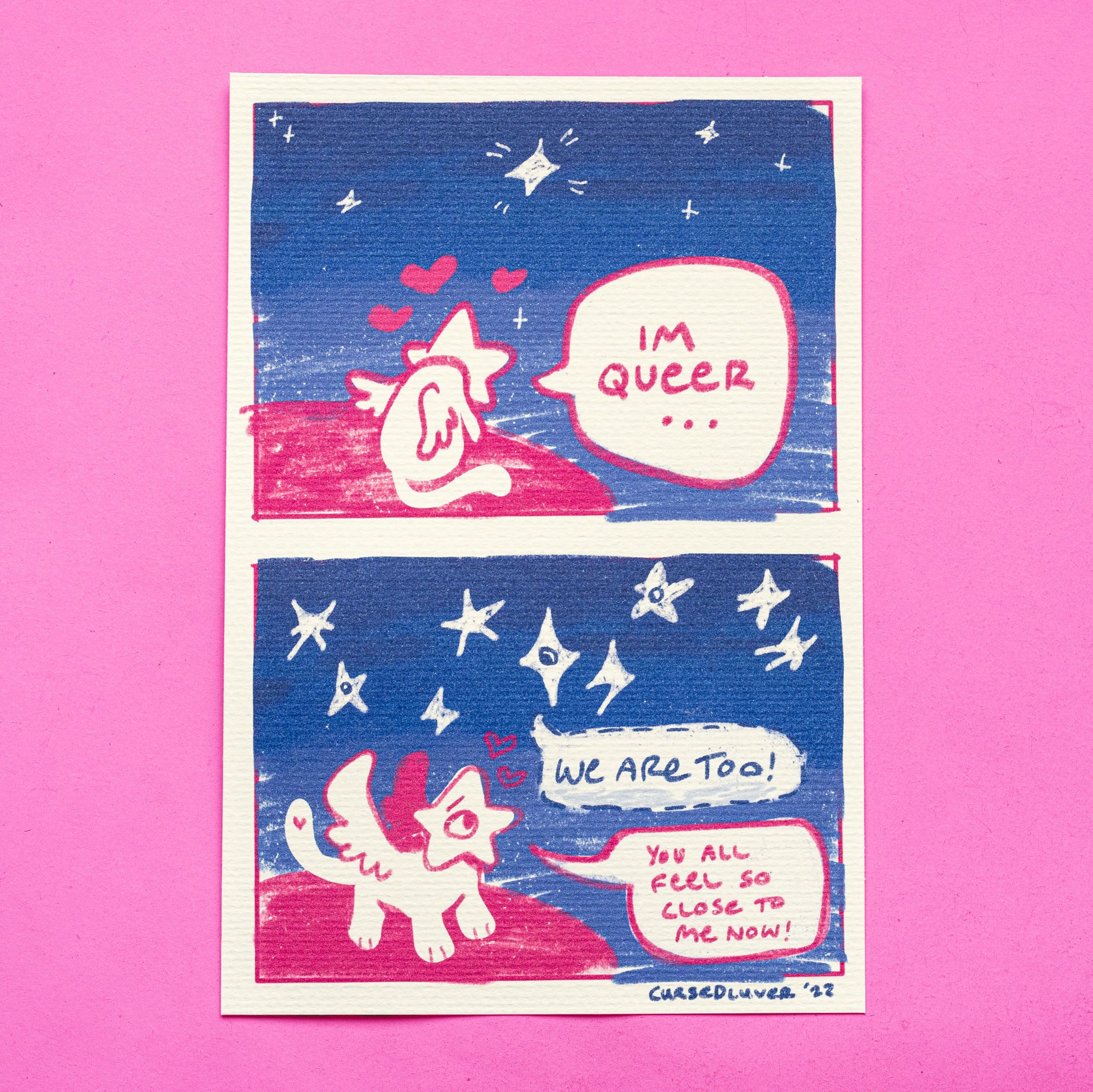 you are not alone! an original illustrated print by CURSEDLUVER printed on textured felt board