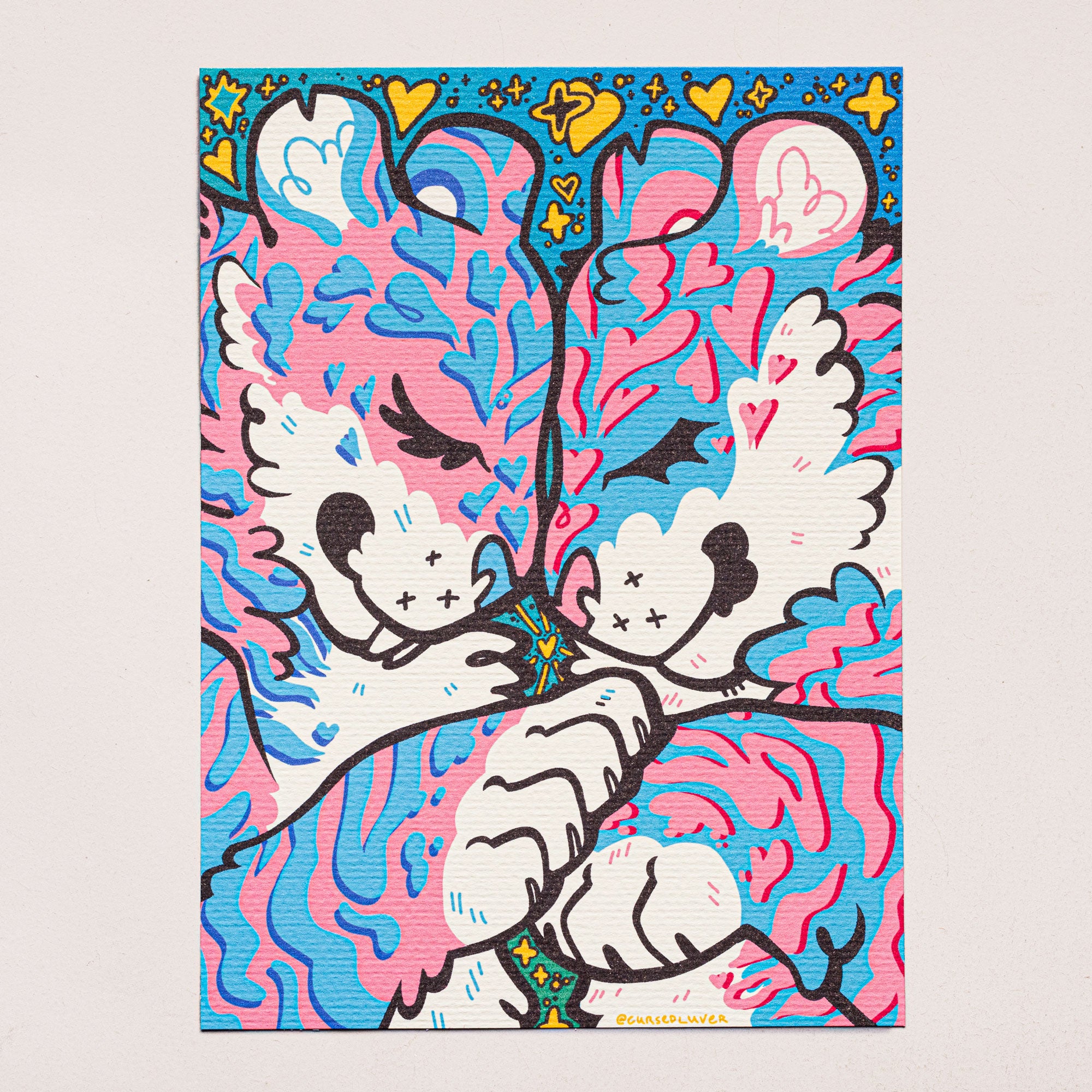 transcendent transgender tigers touching tenderly <3 an original illustrated print by CURSEDLUVER printed on textured felt board.