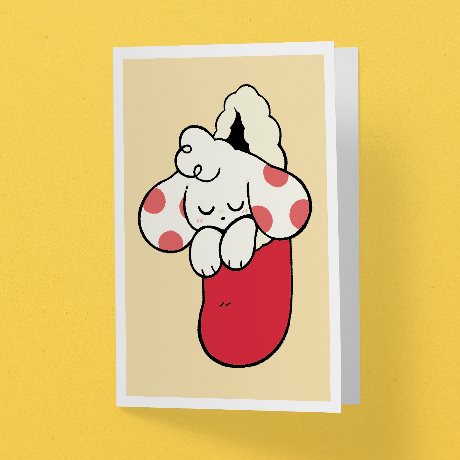 Look who's waiting in your stocking, someone's been extra nice this year! Celebrate Christmas with this original illustration printed on high quality responsibly sourced card stock. This folded A6 size greeting card comes with an included envelope.