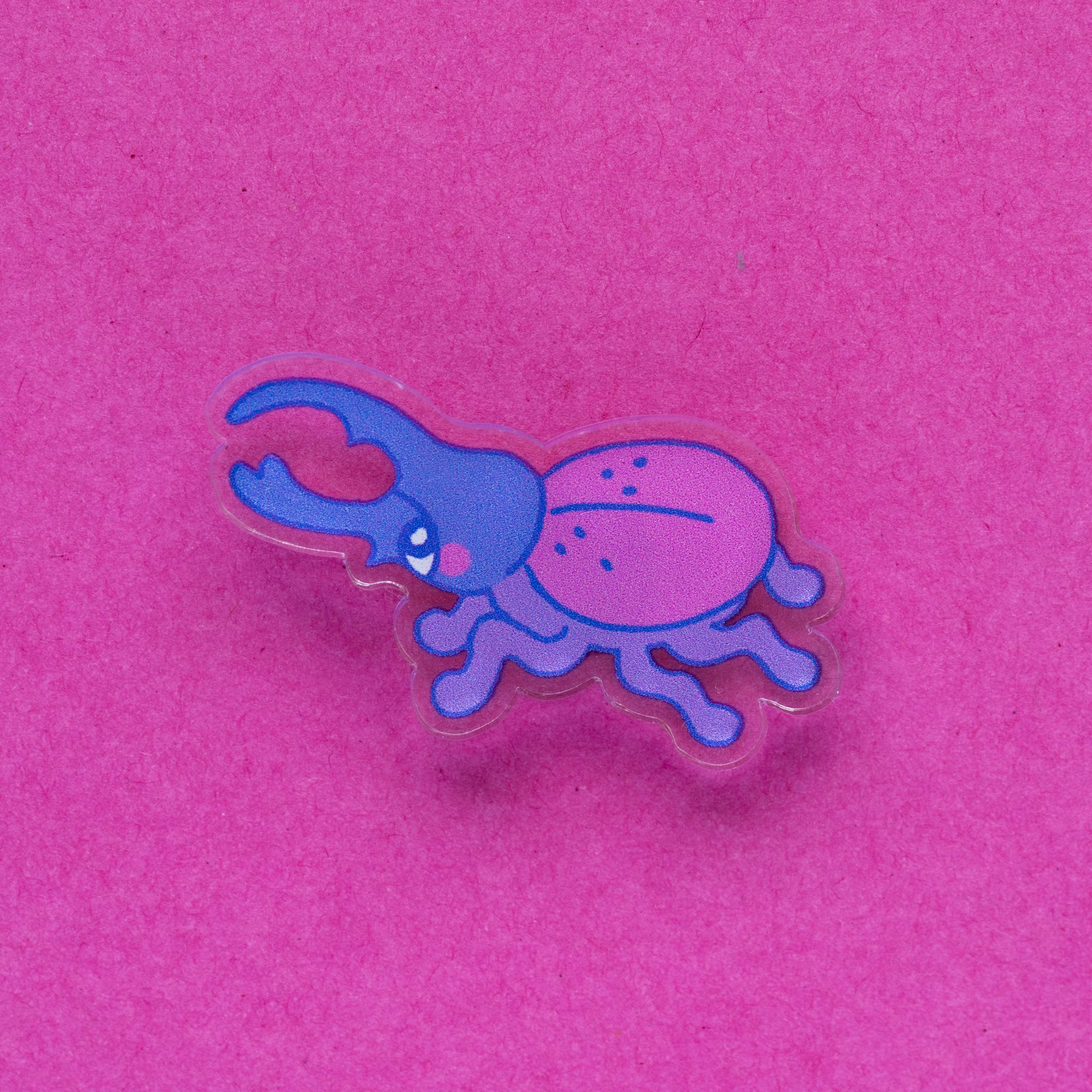 This clear acrylic pin is great for sticking on your backpack or shirt, or a display pin-board!