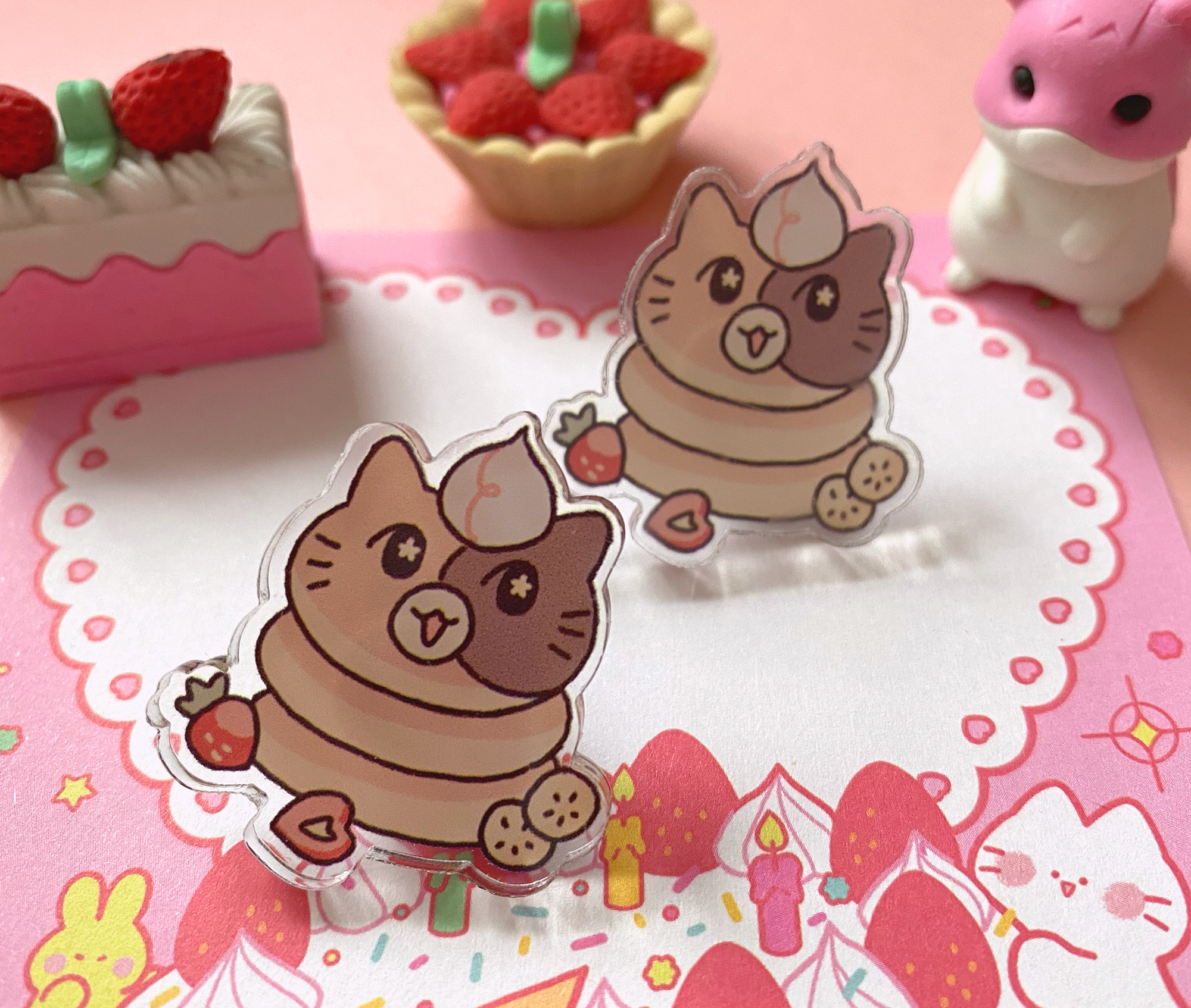 Who doesn't love a stack of pancakes shaped like an adorable kitty! You don't even have to feel guilty about eating this precious dessert, instead you can keep it pinned to your backpack or jacket to admire for years to come~