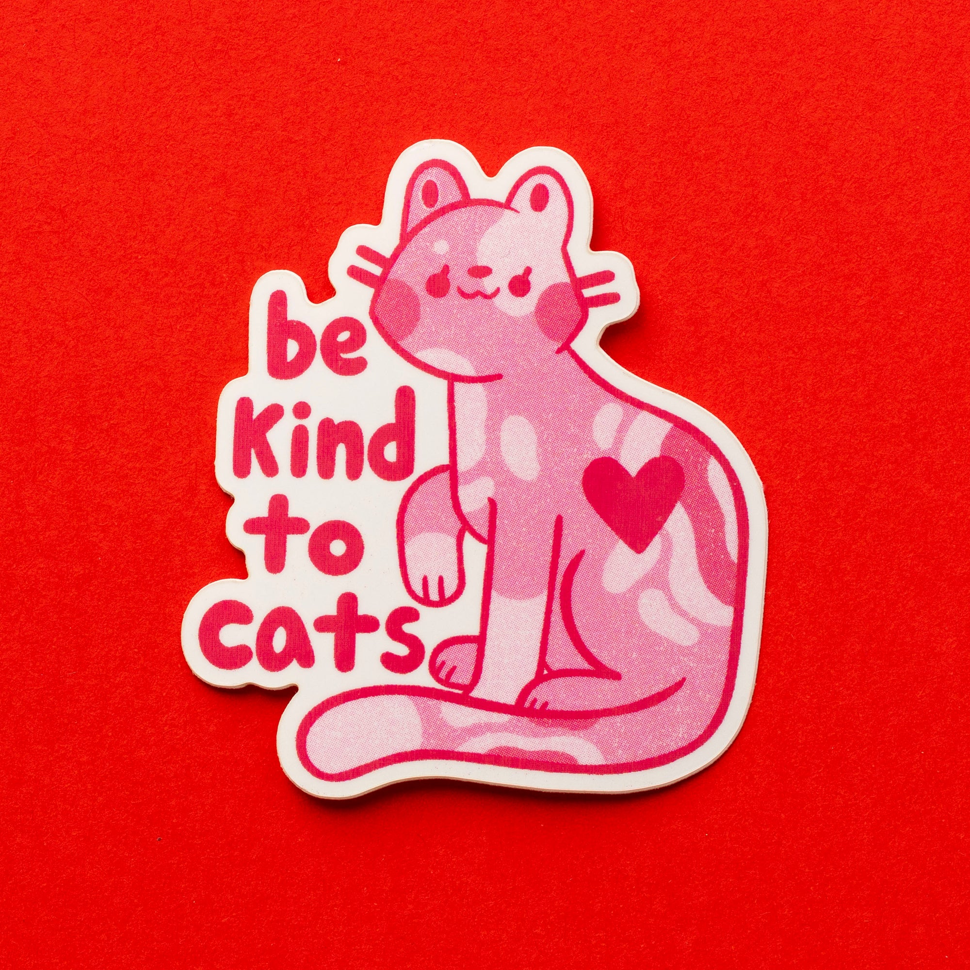 Let's be kind of cats! Show off your love for all the world's kitties with this sticker. Originally apart of a local, Savannah, Georgia, USA animal shelter charity event, this sticker is not only cute but comes with a wonderful message. It is coated in a glossy finish that really the sticker sleek and colors pop!
