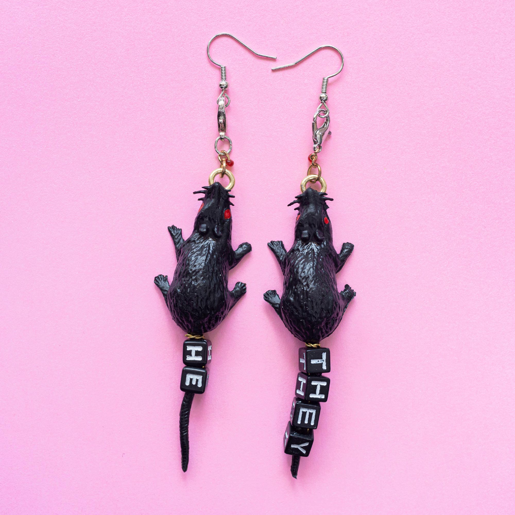 He/They Pronoun Rat Earrings
