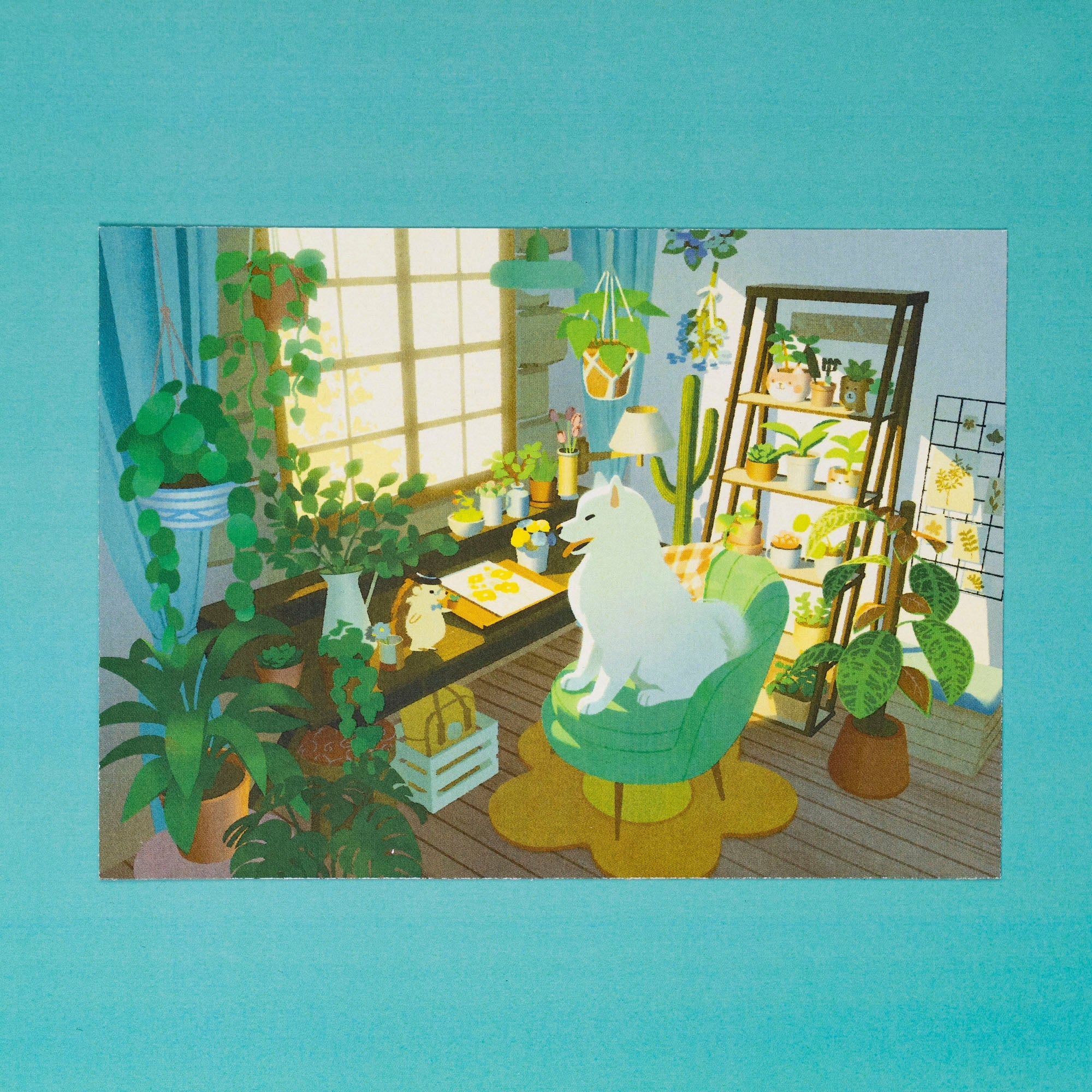 Just a couple of friends chatting about houseplants in the sun, by legendary Kinder World collaboration artist Lucy Zhang.