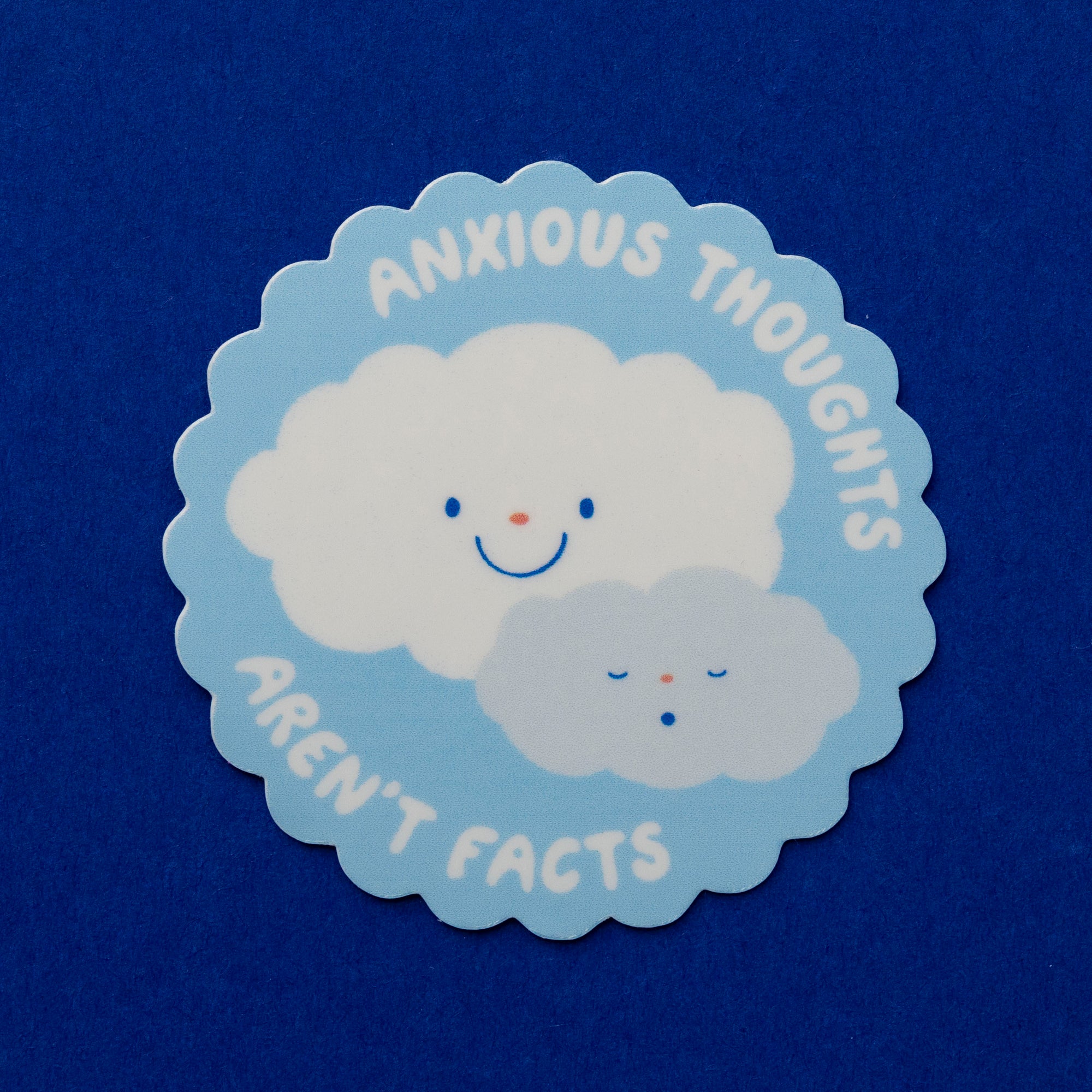Anxious thoughts aren't facts - the most important reminder. ♡ Die-cut sticker printed on glossy vinyl sticker paper and laminated.