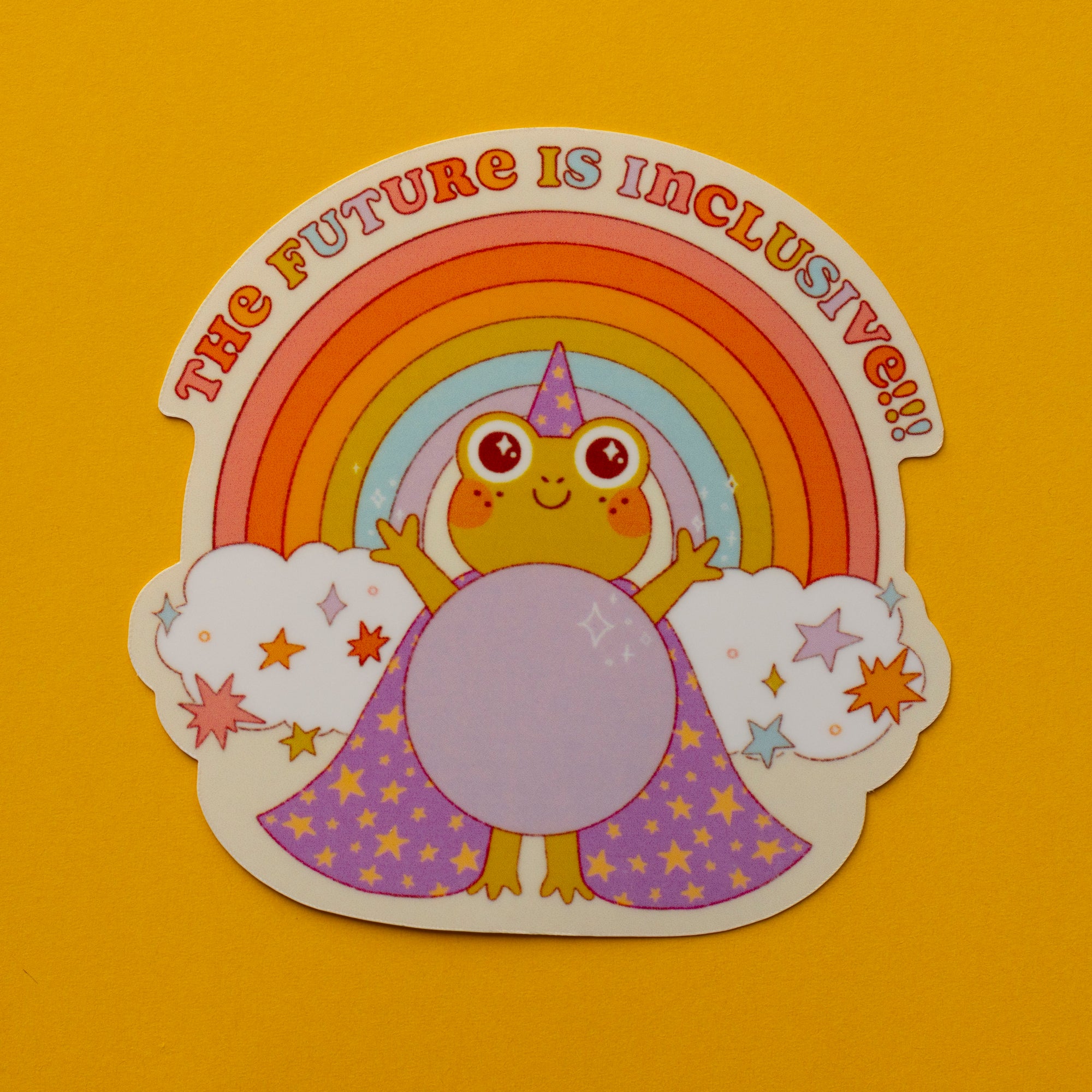 The future is inclusive!! Die-cut sticker printed on glossy vinyl sticker paper and laminated.