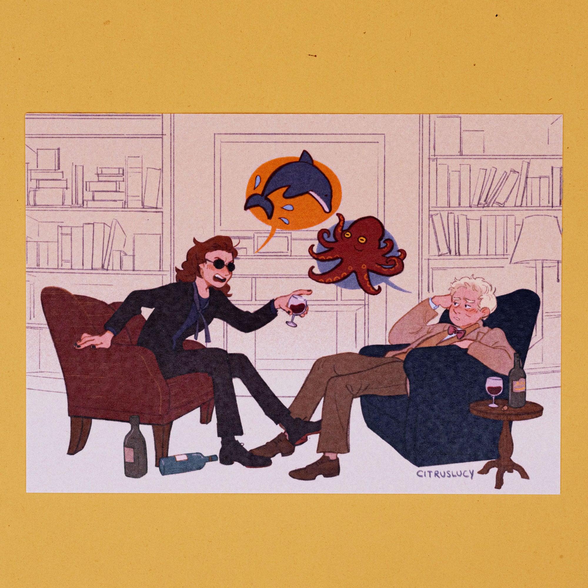 A6 postcard print featuring Aziraphale and Crowley from Good Omens.