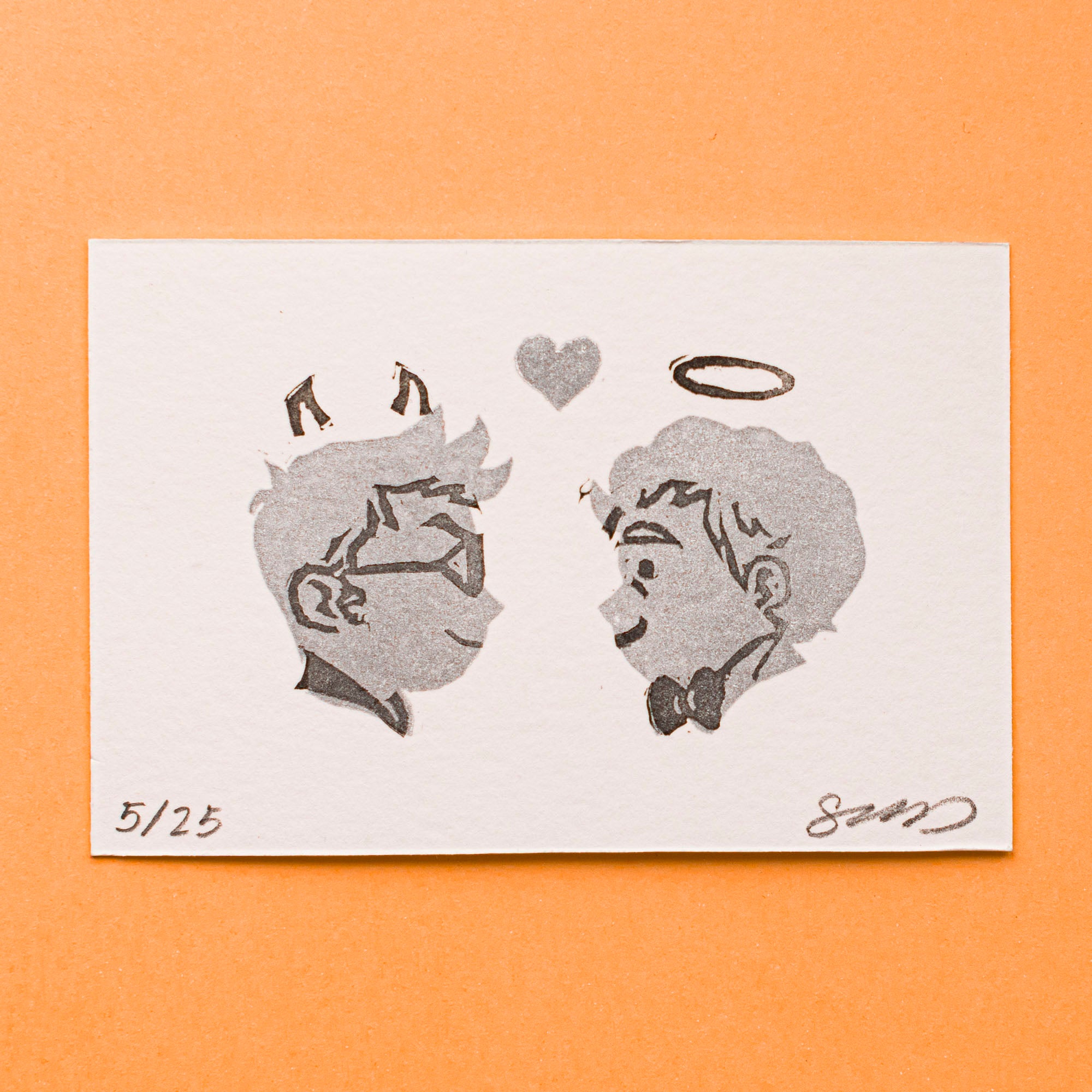 Good Omens Hand Carved Print - Crowley and Aziraphale