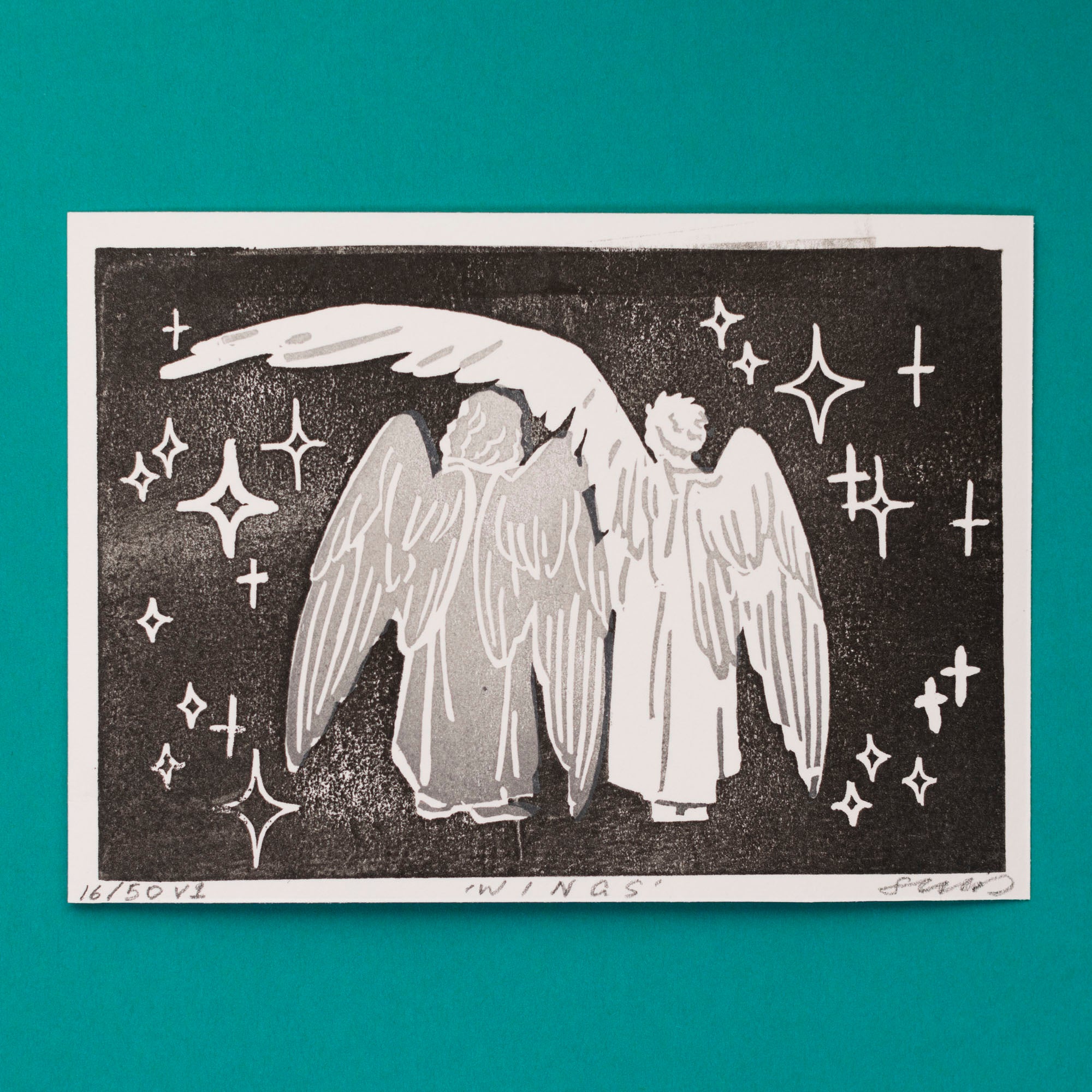 Good Omens Hand Carved Print - Wings (Black)