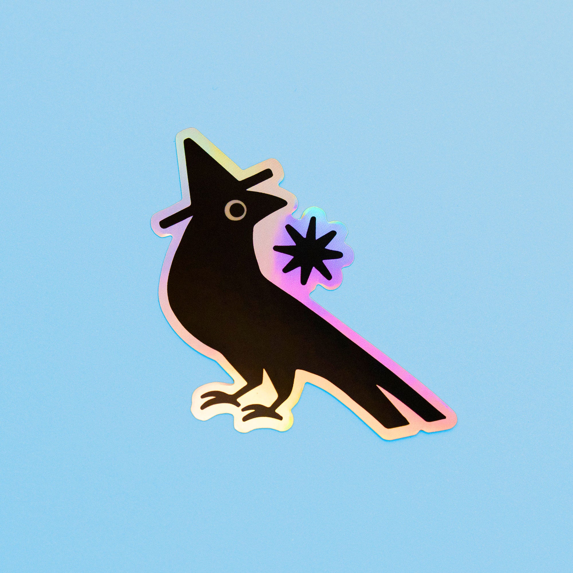 An original illustrated holographic sticker featuring a fine feathered fellow by Citruslucy