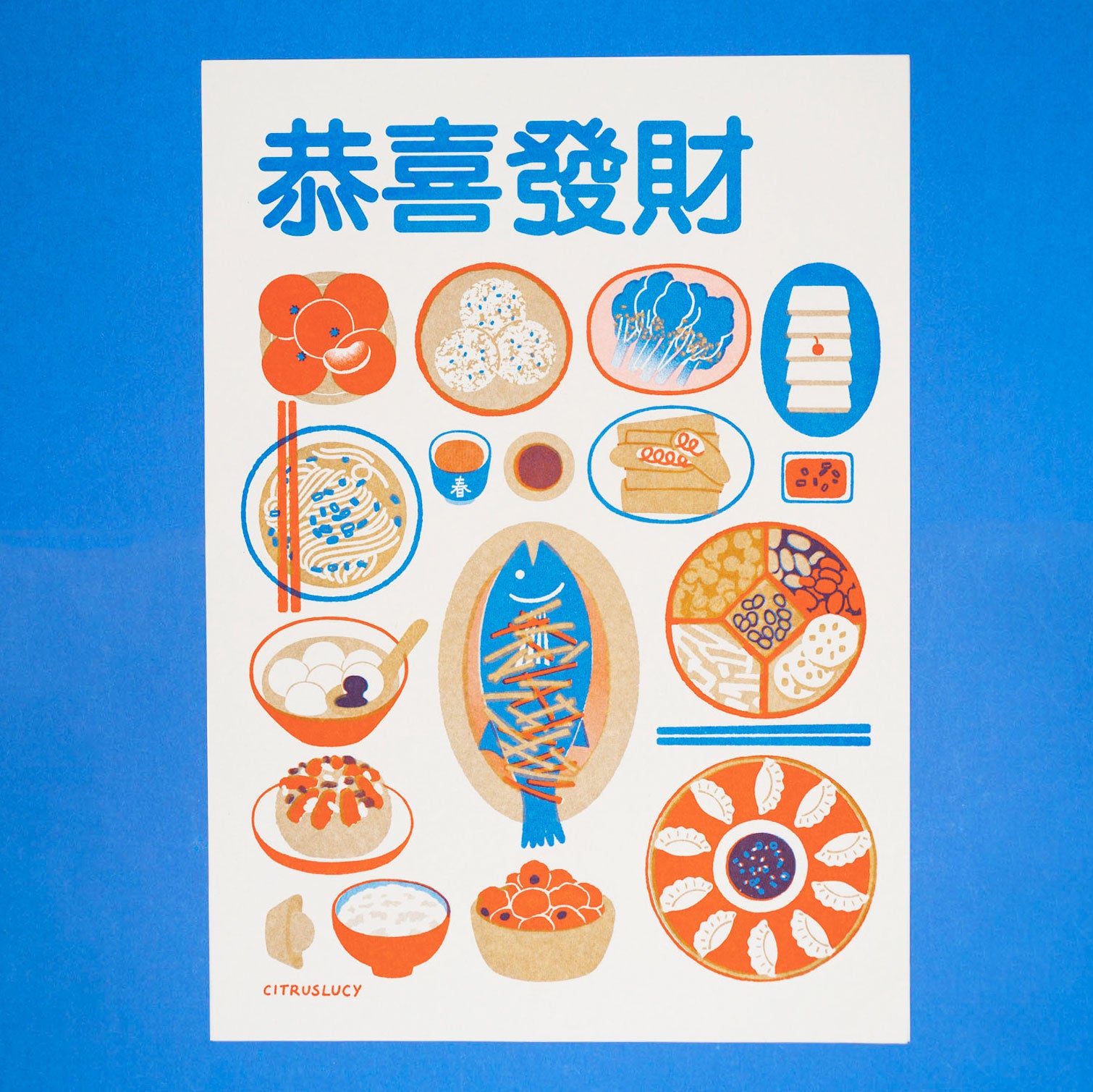 Three colour (red, blue and gold) risograph print. Printed in Japan.