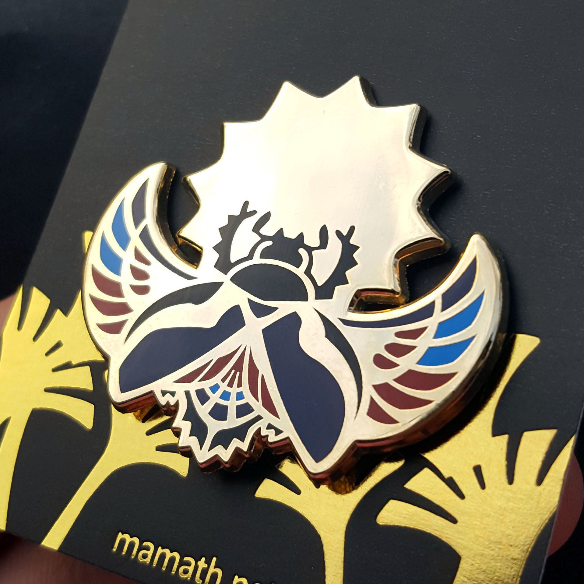 God of creation and the morning sun. Khepri was often depicted as a scarab beetle holding the sun. A hard enamel pin of the ancient Egyptian deity, Khepri - Tiny Pantheon style! Measures 40mm (approx 1.6 inches) in height and features 2 posts on the back so that it remains in place wherever you pin it!