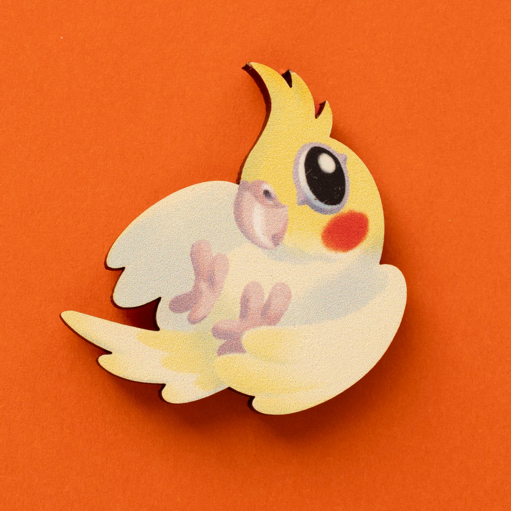 These little Aussie cockatoo pins are printed in full colour on sustainably sourced wood! They have two pin posts on the back to keep them securely in place wherever you put them (unlike the real thing) and feature a little gloss finish on their eyes for that extra spark of life when they catch the light.