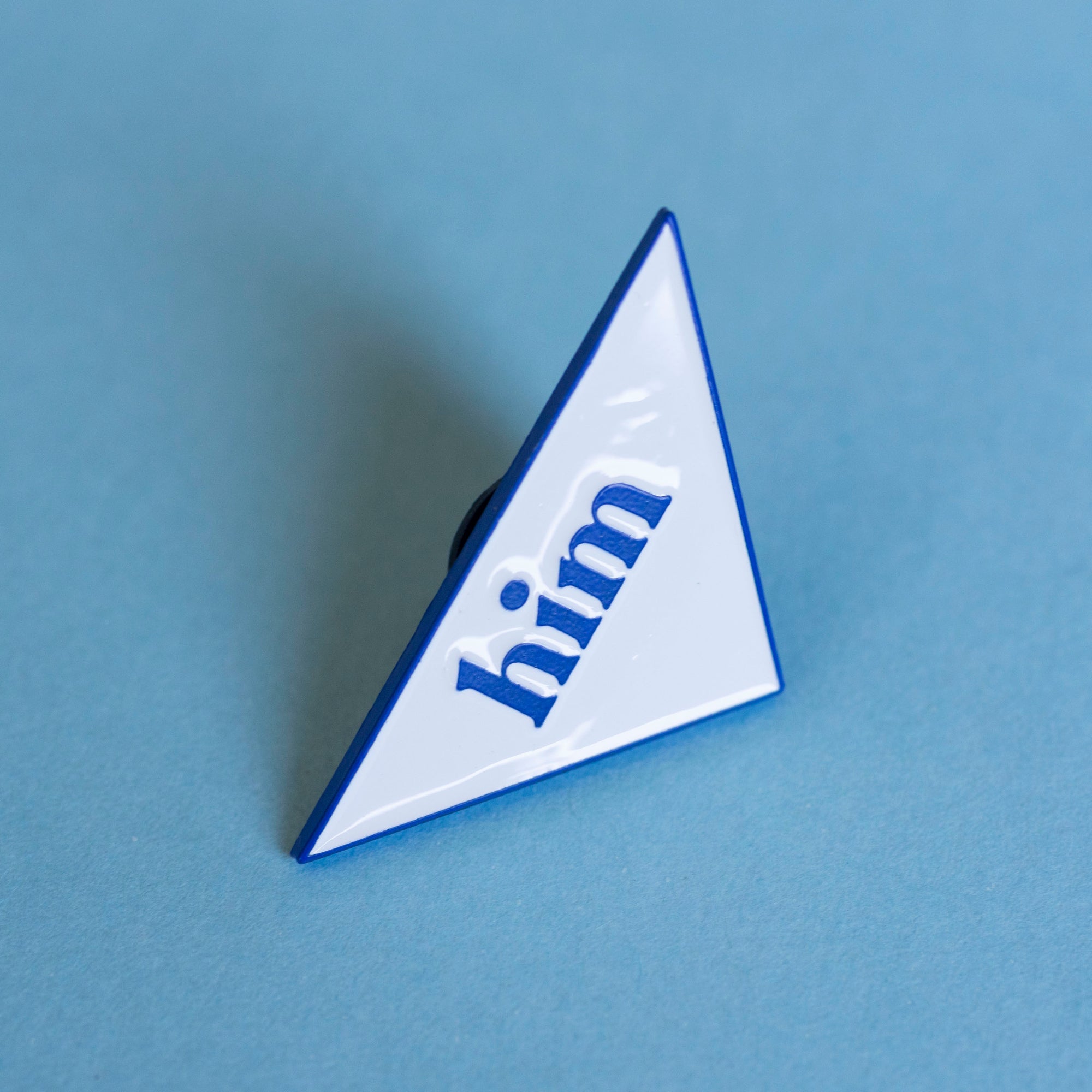 HIM! Create your very own custom combination of pronoun pins! Made with Soft Enamel on Blue Coated Iron.