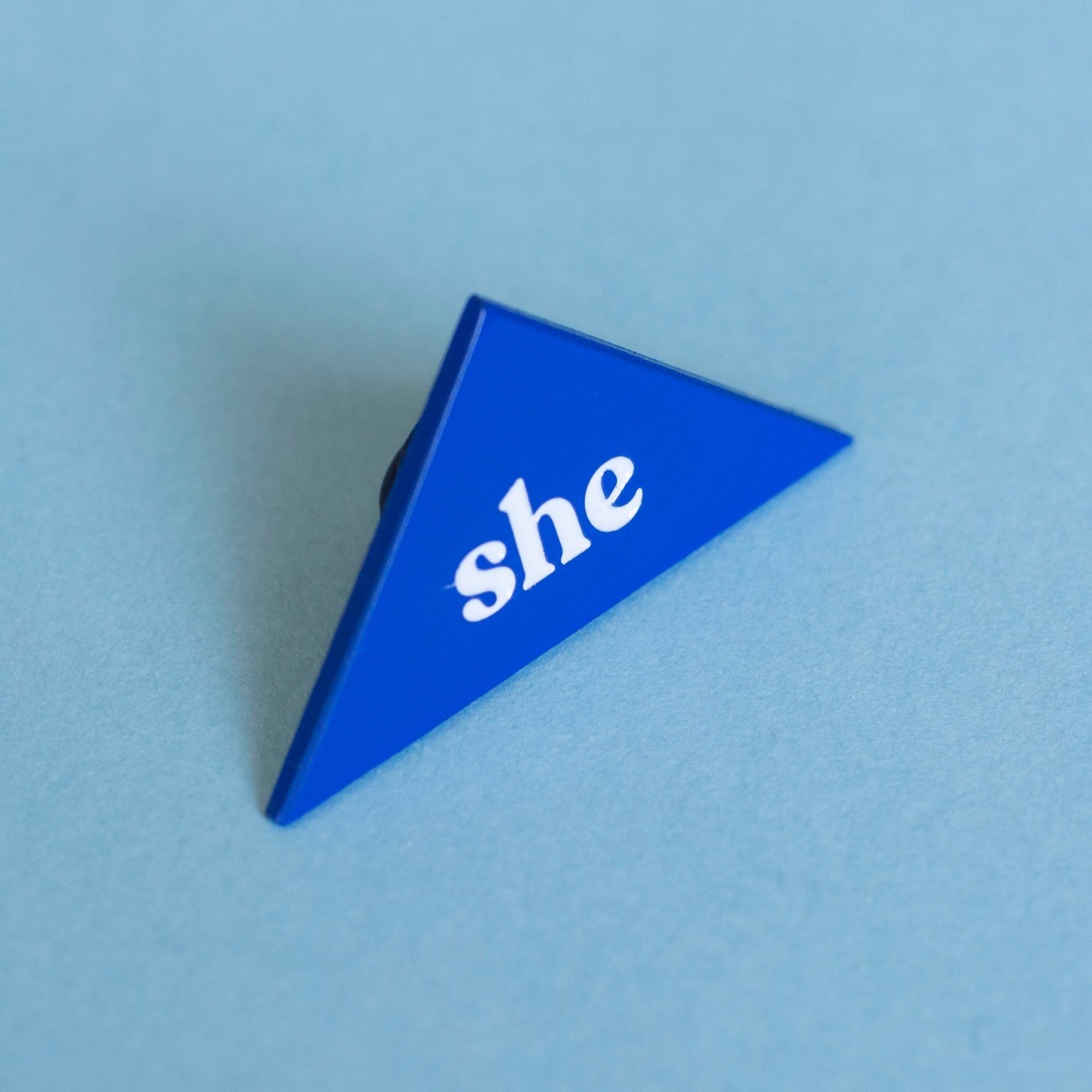 SHE! Create your very own custom combination of pronoun pins! Made with Soft Enamel on Blue Coated Iron.