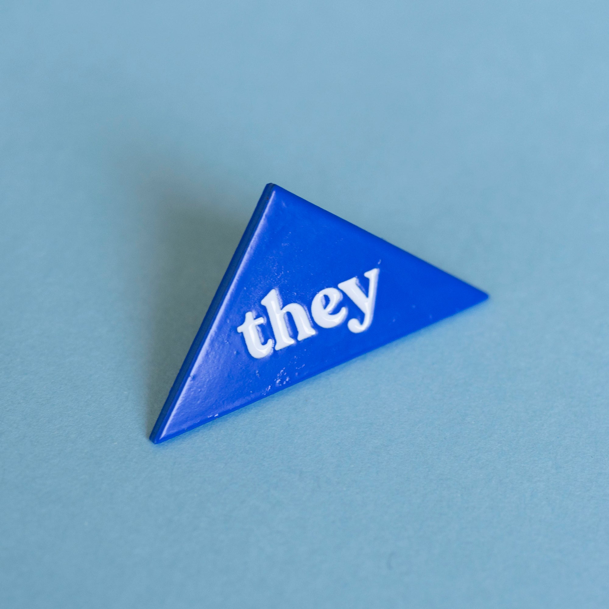 THEY! Create your very own custom combination of pronoun pins! Made with Soft Enamel on Blue Coated Iron.