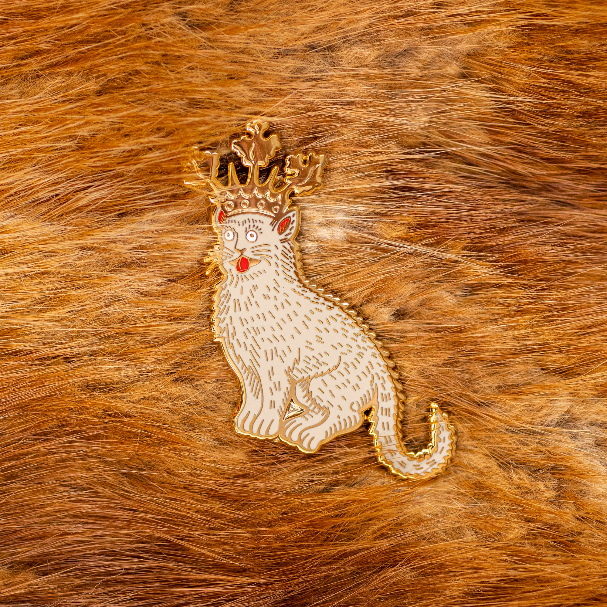 "A cat may look at a king" or in this case "a cat may be a king"? 2.3 inch hard enamel pin, gold plated, two posts, rubber clutches & back stamp.