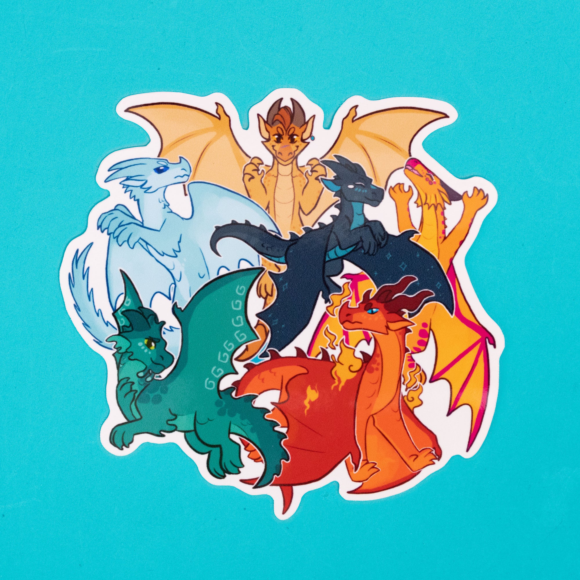 This illustrated fan art vinyl sticker by MEROAW is a charming depiction of the Jade Winglets, a group of young dragonets from the popular Wings of Fire book series. The high-quality vinyl material ensures that the sticker will remain in great condition even with regular use. Add this sticker to your laptop, notebook, water bottle, or any other surface for a touch of whimsy and fun!