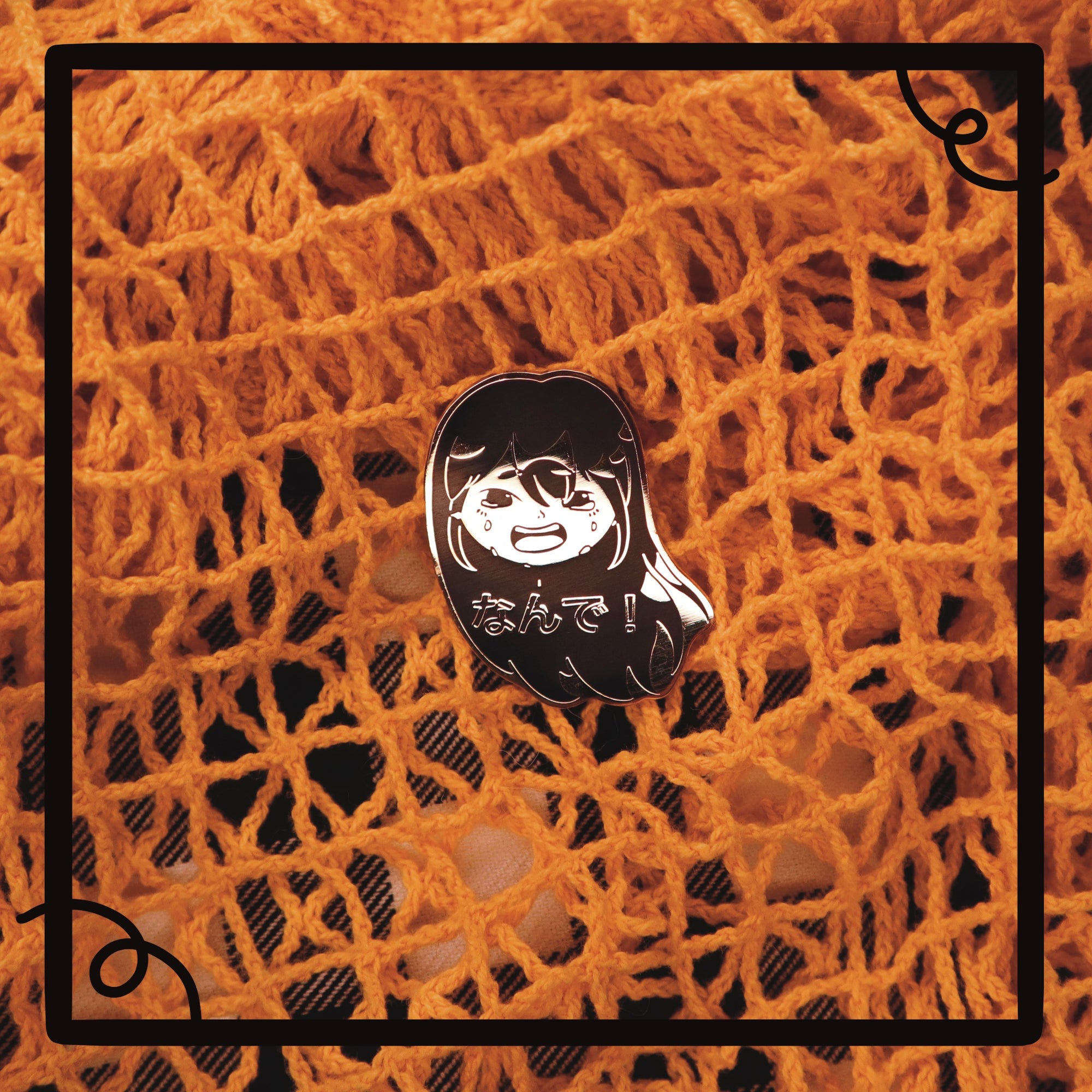 "Nande" meaning "why?!" in Japanese. This design was created when the artist was stood down from her job during the Covid pandemic so it was a purely emotional piece.