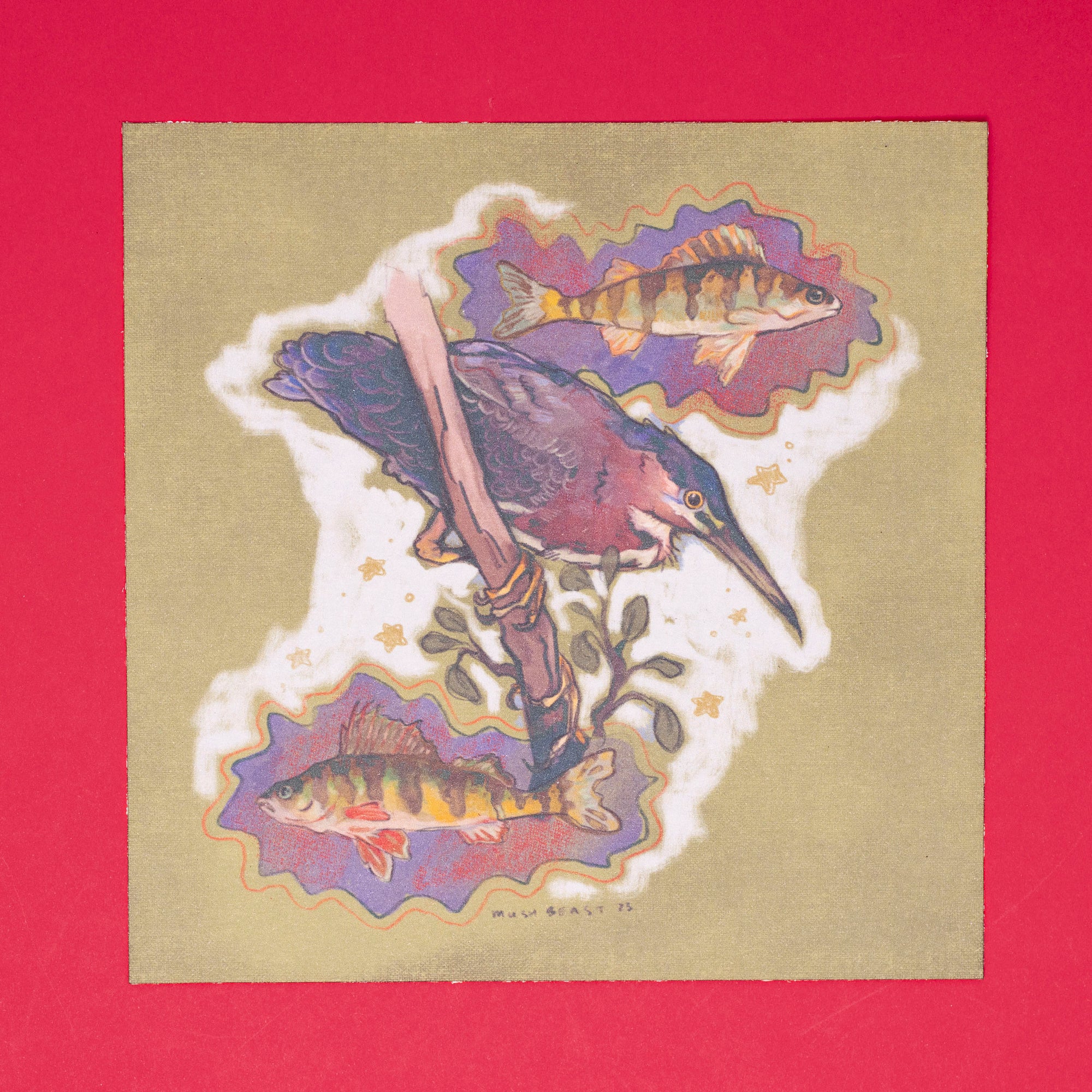 green heron & yellow perches print