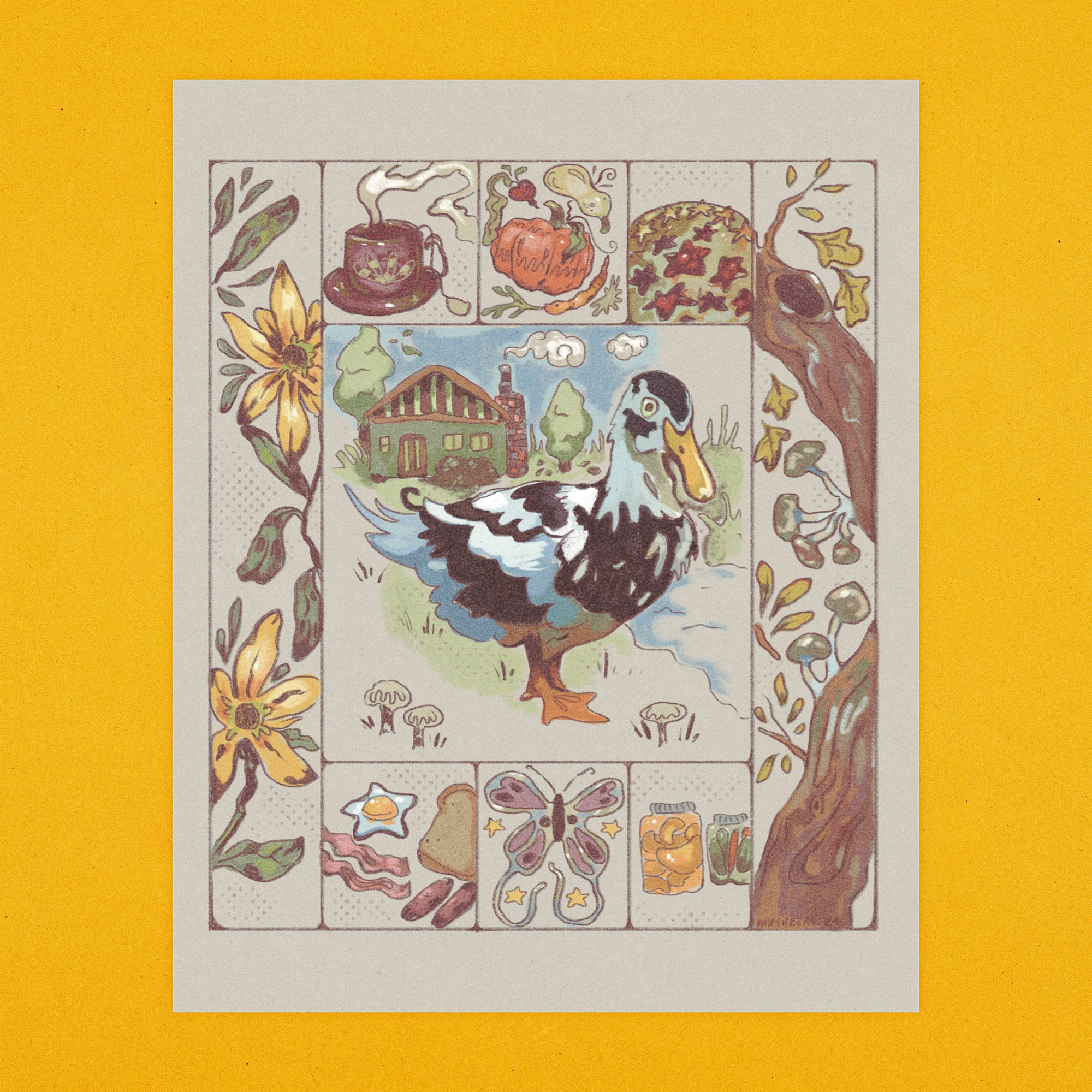 an illustration depicting the coziness of fall and a simple life.