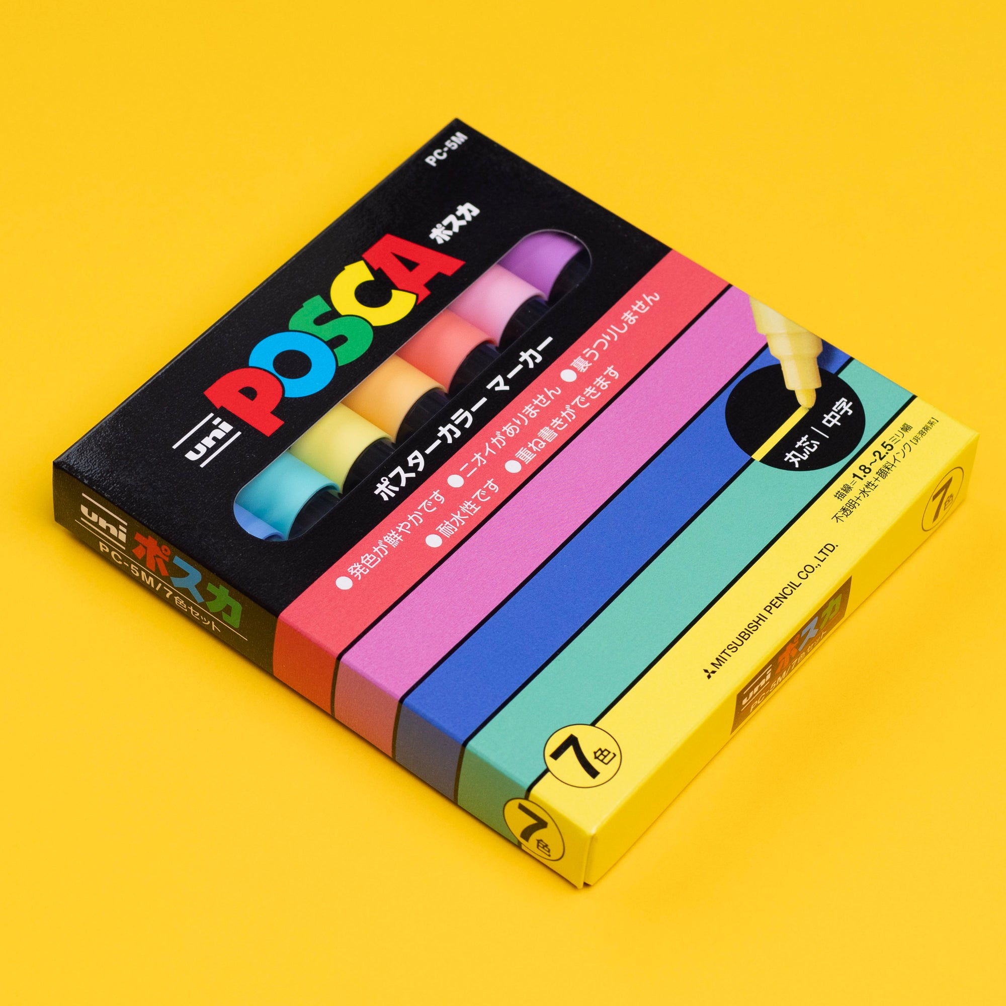 Uni POSCA paint markers feature bright opaque ink which is water-based, waterproof, and non-toxic, suitable for use on a range of surfaces and materials including paper, photos, plastic, metal, glass and wood.