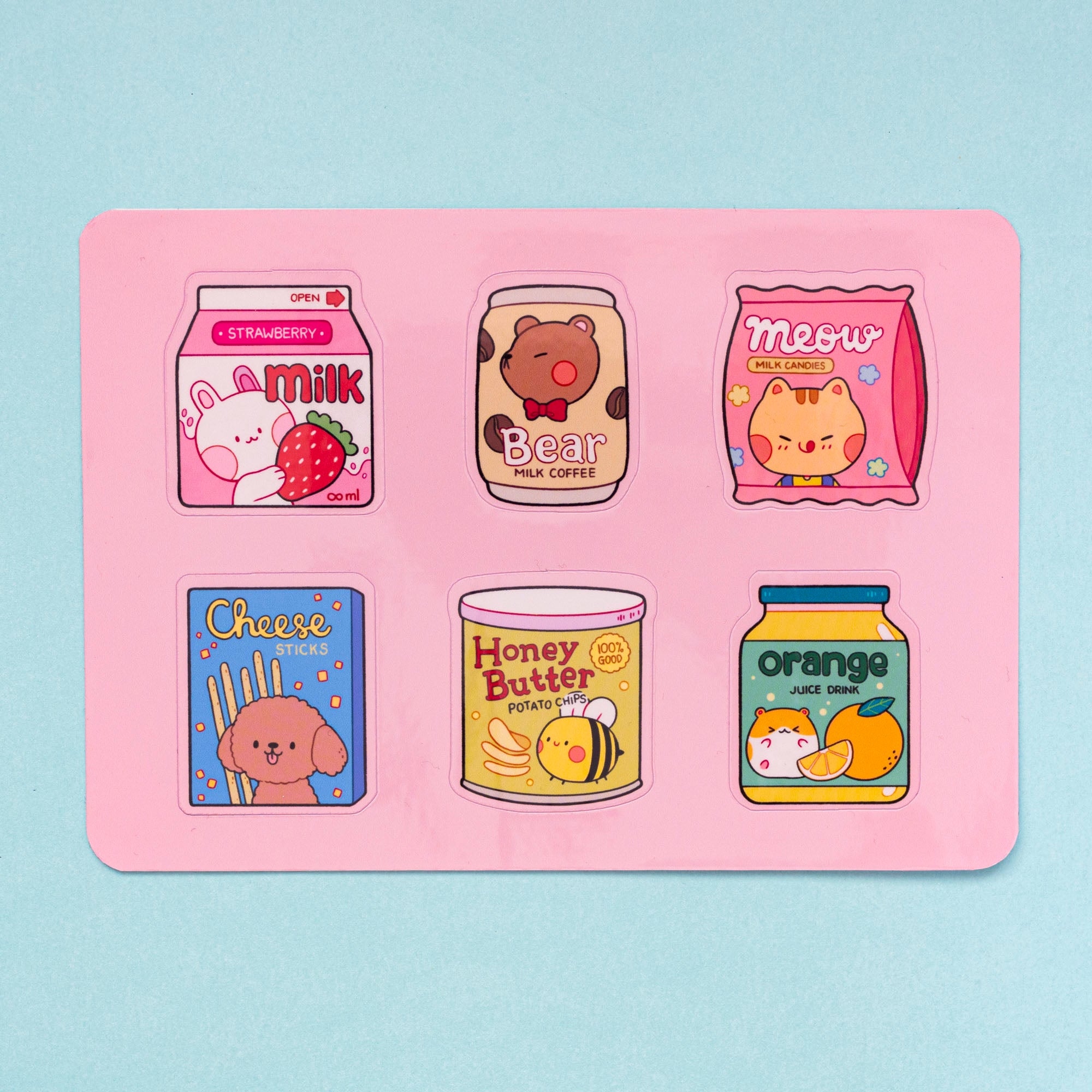 Bite-sized stickers to satisfy your cravings for cute things, in one convenient A6 sheet. Each sticker is approximately 3.5cm tall.