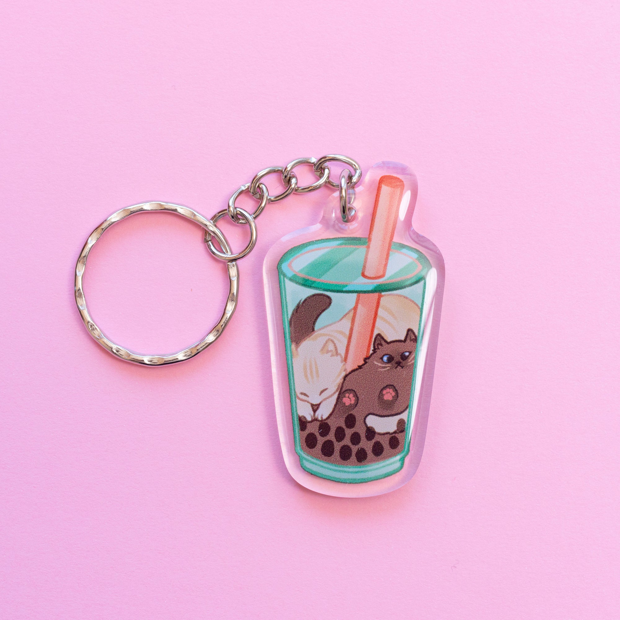 Add some purr-sonality to your keys with our cute acrylic boba bubble tea cat keychain! Made from high quality acrylic, this keychain is durable and built to last. The adorable boba cat design is sure to delight any boba lover, and the keychain itself is lightweight and easy to carry around. Whether you're using it to accessorize your keys or attaching it to a bag or backpack, this keychain is the perfect addition to any accessory collection.