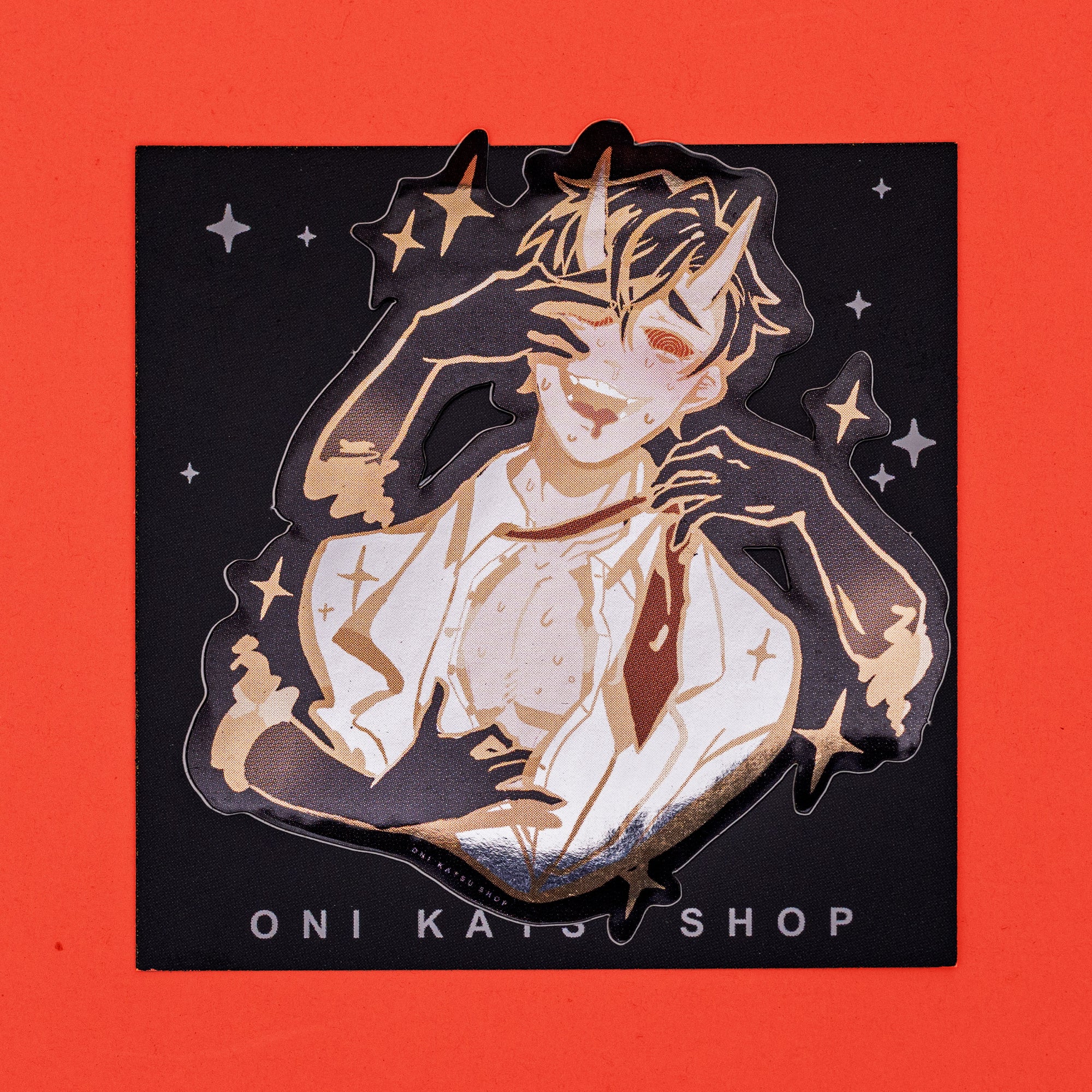 A spooky halloween businessman! Printed on mirror water proof vinyl. He'll be okay... I think?